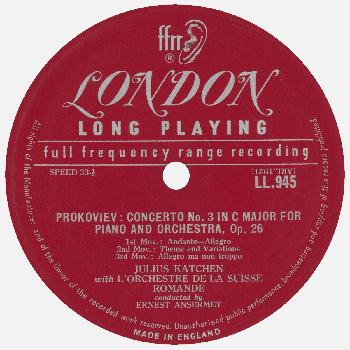 Ernest ANSERMET enregistra ces deux concertos en novembre 1953, avec "son" Orchestre de la Suisse Romande et Julius KATCHEN en soliste, comme d'habitude dans le Victoria Hall de Genève, pour Decca. Première parution: février 1954 sur Decca LXT 2894, avril 1954 sur Decca LONDON LL 945.