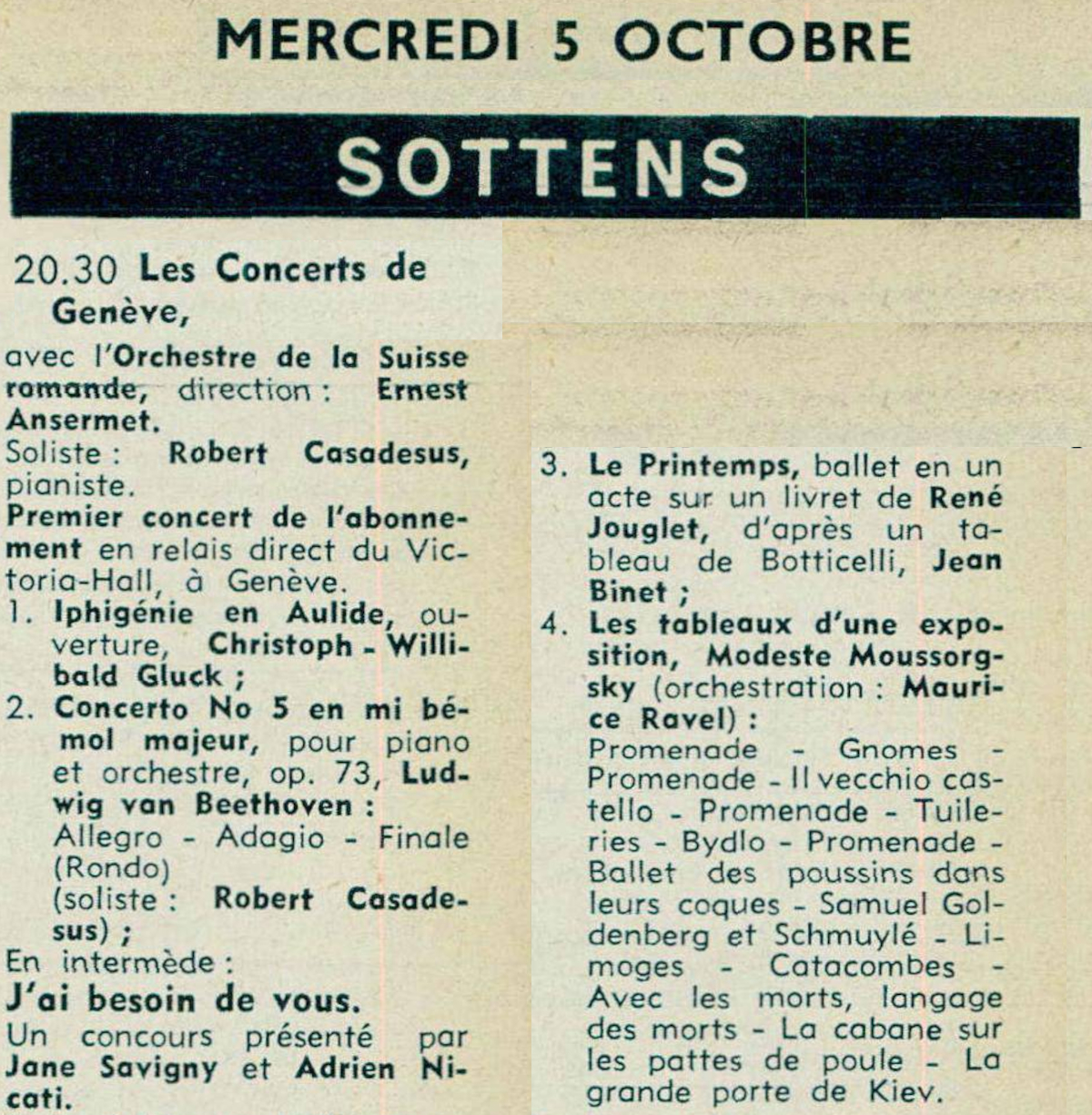 Au programme de ce premier concert de l'abonnement de la saison 1960-1961: