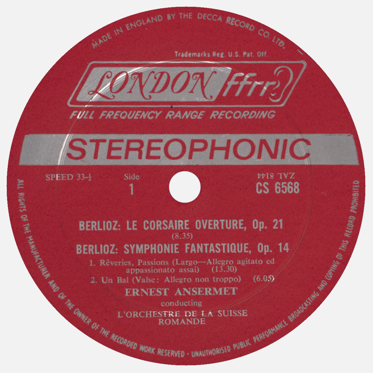 Les 3, 4 et 5 novembre 1967, dans le Victoria Hall de Genève, Ernest ANSERMET et son Orchestre de la Suisse Romande enregistrèrent - bien entendu pour le label Decca - deux oeuvres composées par Hector BERLIOZ: