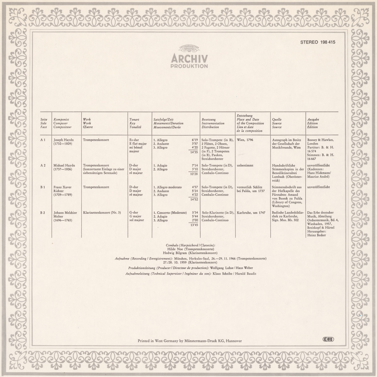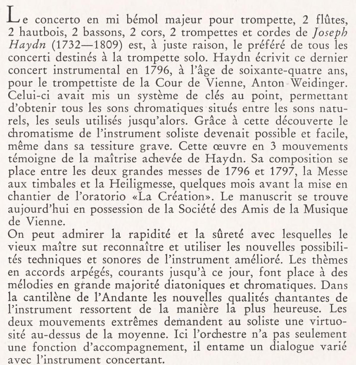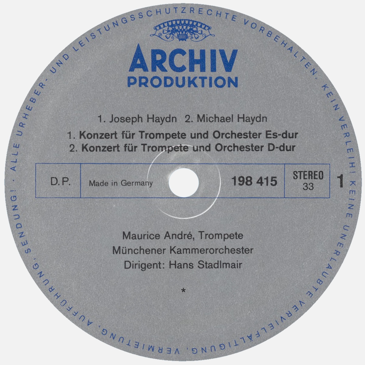 Joseph Haydn, Concerto pour trompette et orchestre en mi bémol majeur, HOB VIIe:1, Maurice André, trompette, Hilde Noe, clavecin, Orchestre de Chambre de Munich, Hans Stadlmayr, 26-29 novembre 1966, Salle Hercules de la Résidence de Munich