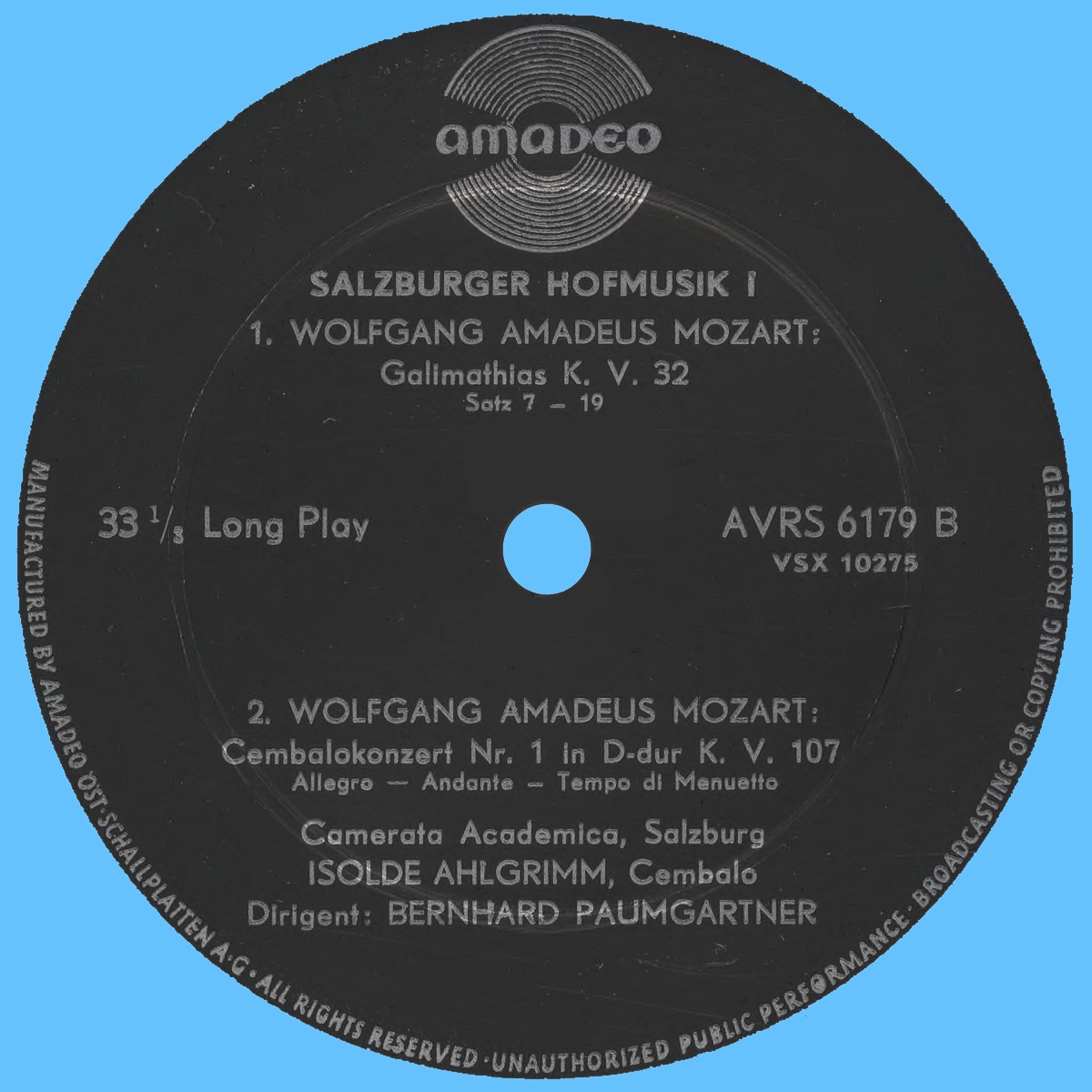 Wolfgang Amadeus Mozart, Concerto pour clavecin et orchestre en ré majeur, KV 107 No. 1, Isolde Ahlgrimm, Camerata Academica, Salzburg, Bernhard Paumgartner, 1960
