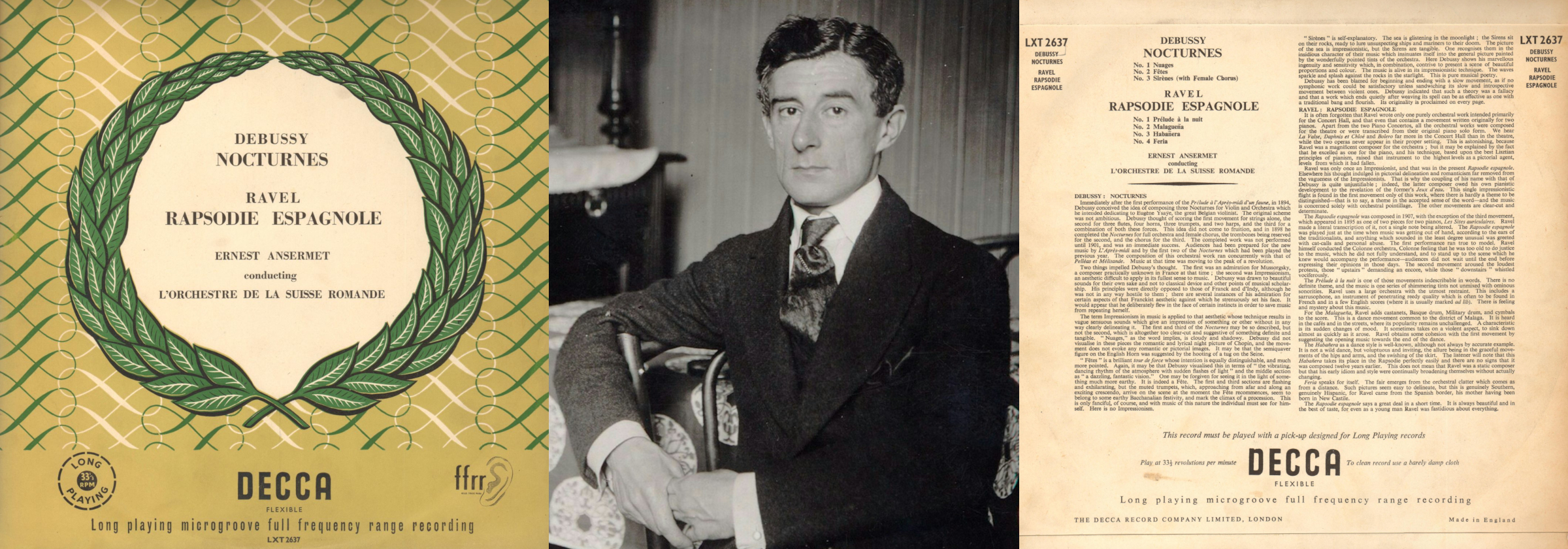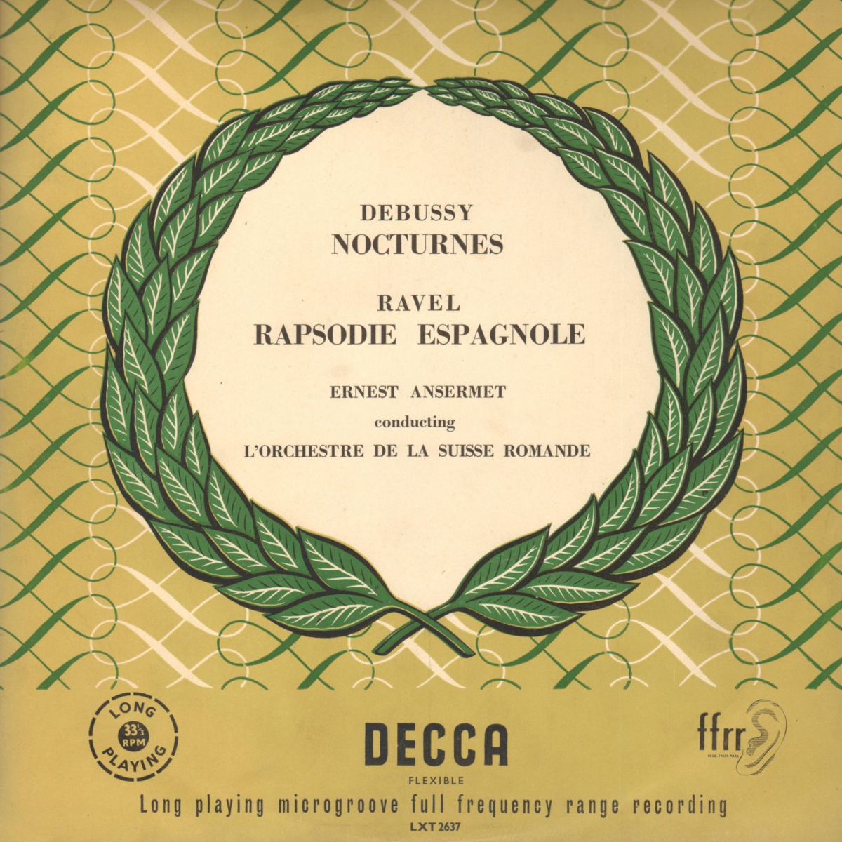 Ernest Ansermet enregistra la Rhapsodie espagnole à deux reprises pour le disque, en 1951, bien entendu en mono, et en 1957, en stéréo. Dans les concerts organisés par l'OSR elle apparaît au programme pour la première fois sous sa direction le 25 novembre 1952, et pour la dernière fois le 17 mars 1967.