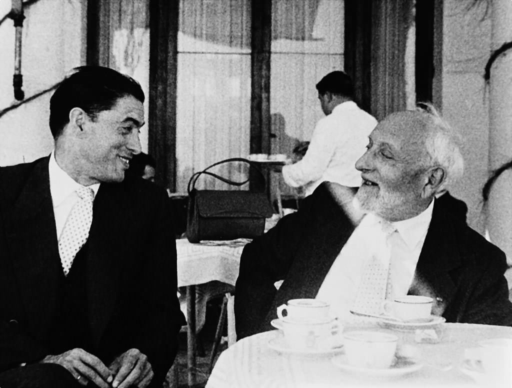 Ernest ANSERMET avec Ataulfo ARGENTA, date exacte, lieu et photographe inconnus. Le chef de l'OSR aurait aimé qu'Ataulfo Argenta prenne sa sucession à la tête de l'orchestre, ce qui ne put malheureusement se réaliser à cause du décès prématuré d'Ataulfo Argenta.