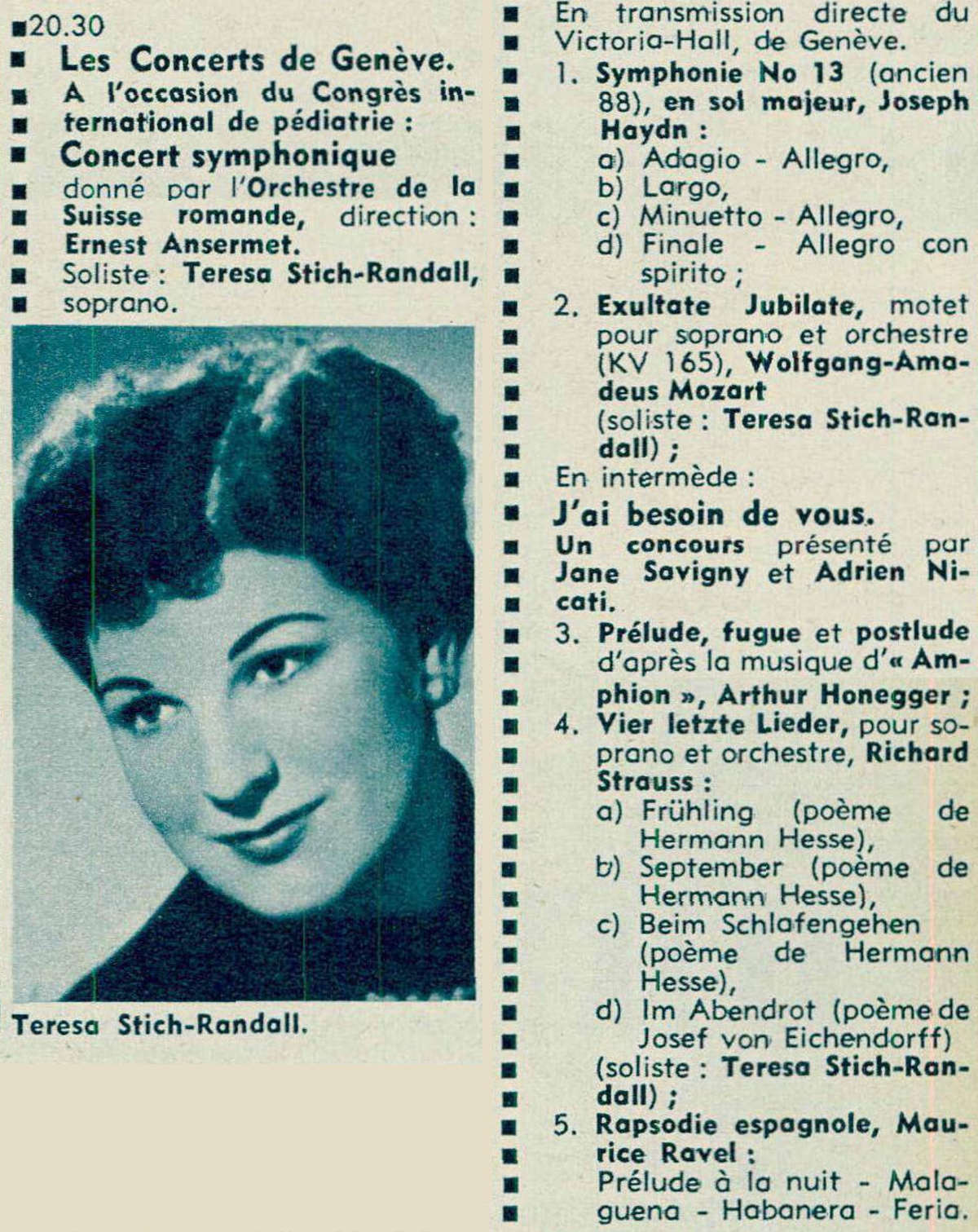 L'enregistrement présenté sur cette page provient d'un concert donné au Victoria-Hall de Genève le 17 mai 1961, et retransmis en direct par la Radio Suisse Romande: