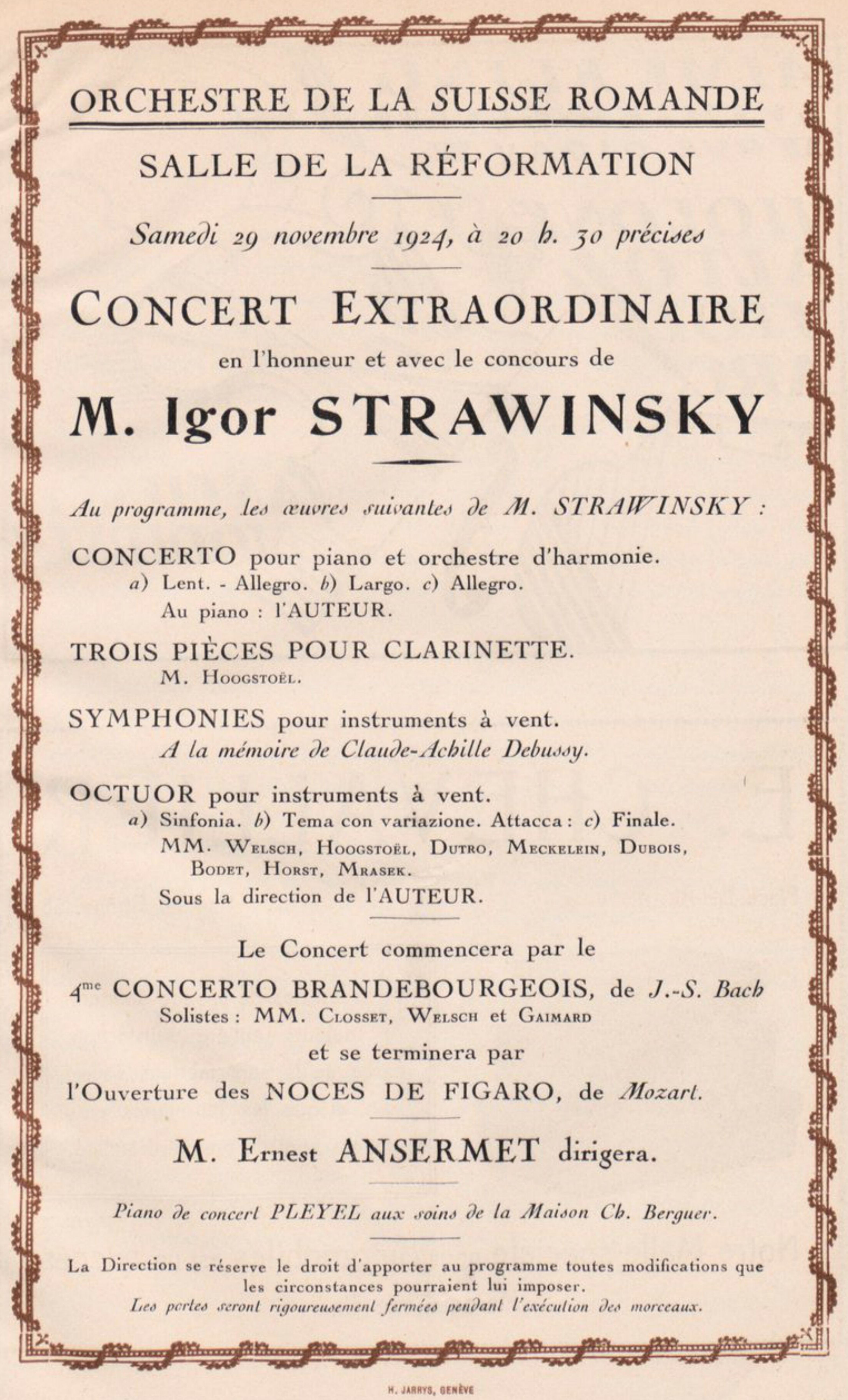 Igor Strawinski, Concerto pour piano, instruments à vent, timbales et contrebasse, Nikita Magaloff, Orchestre de la Suisse Romande, Ernest Ansermet, 1955, Decca London