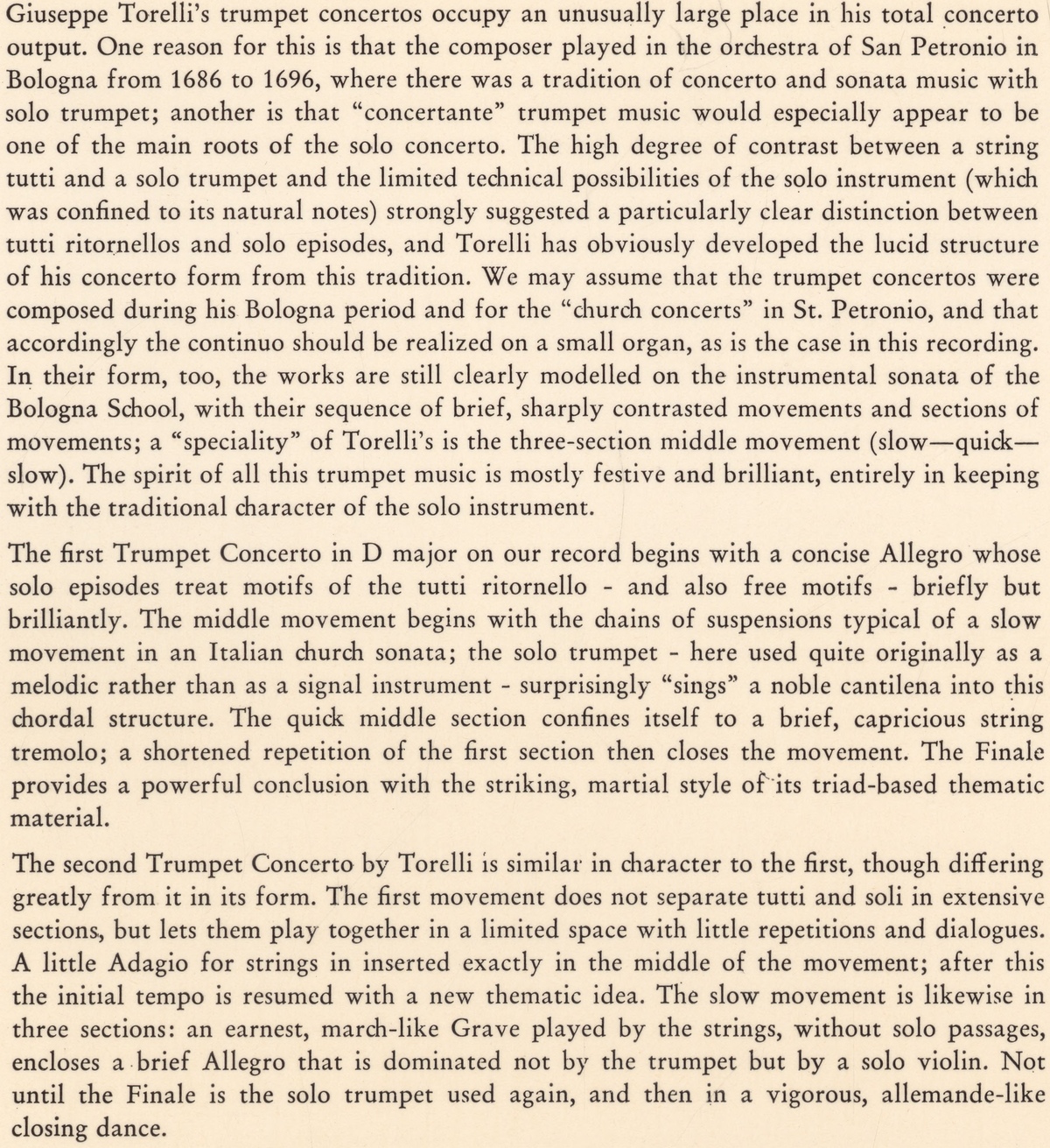 Giuseppe Torelli, Concerto pour trompette en ré majeur (I), Maurice André, Concerto Amsterdam, janvier 1966, Église Réformée de Bennebroek, Hollande