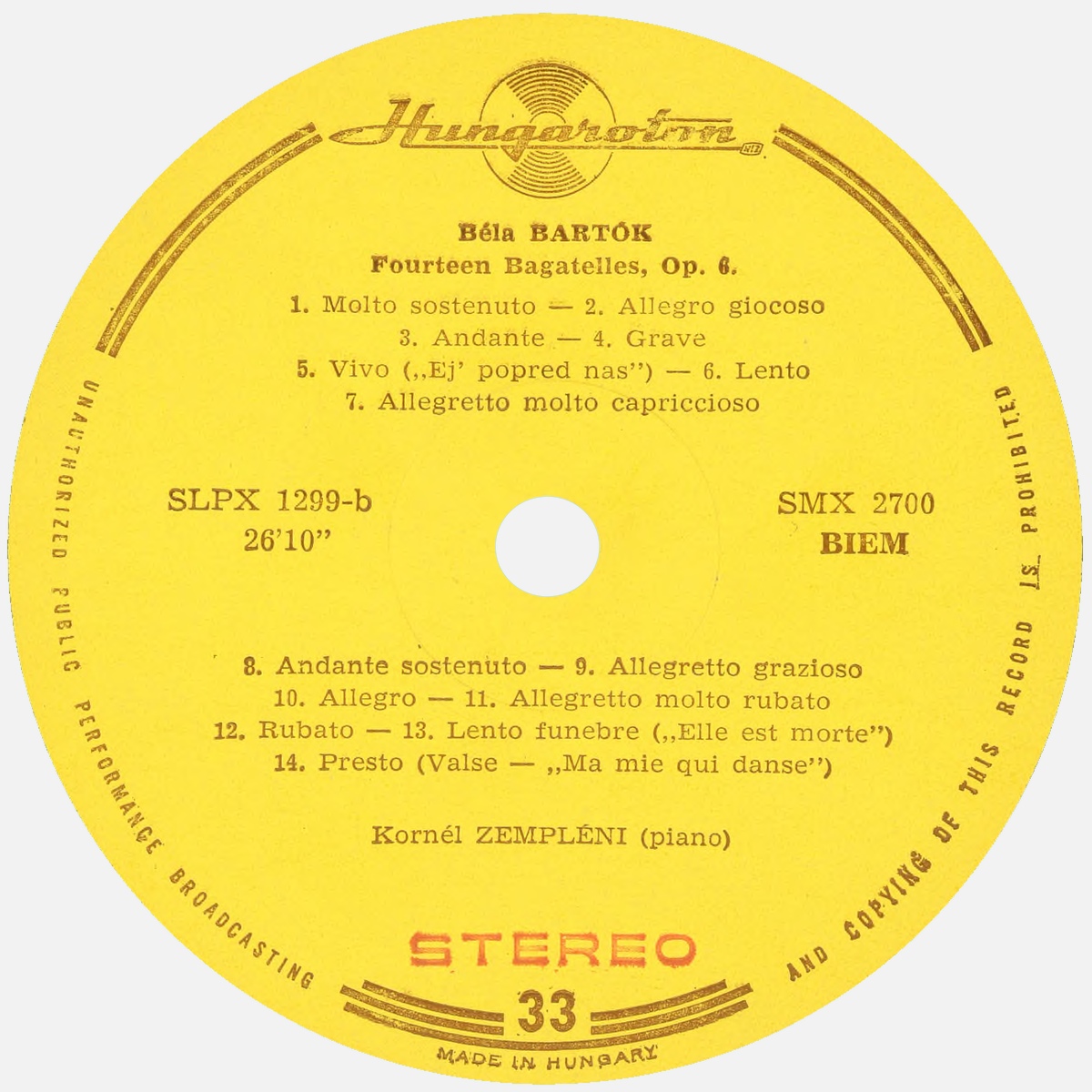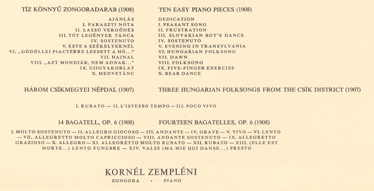 Béla Bartòk, 14 Bagatelles, Op. 6, Sz 38, BB 50, Kornél Zempléni, 1966