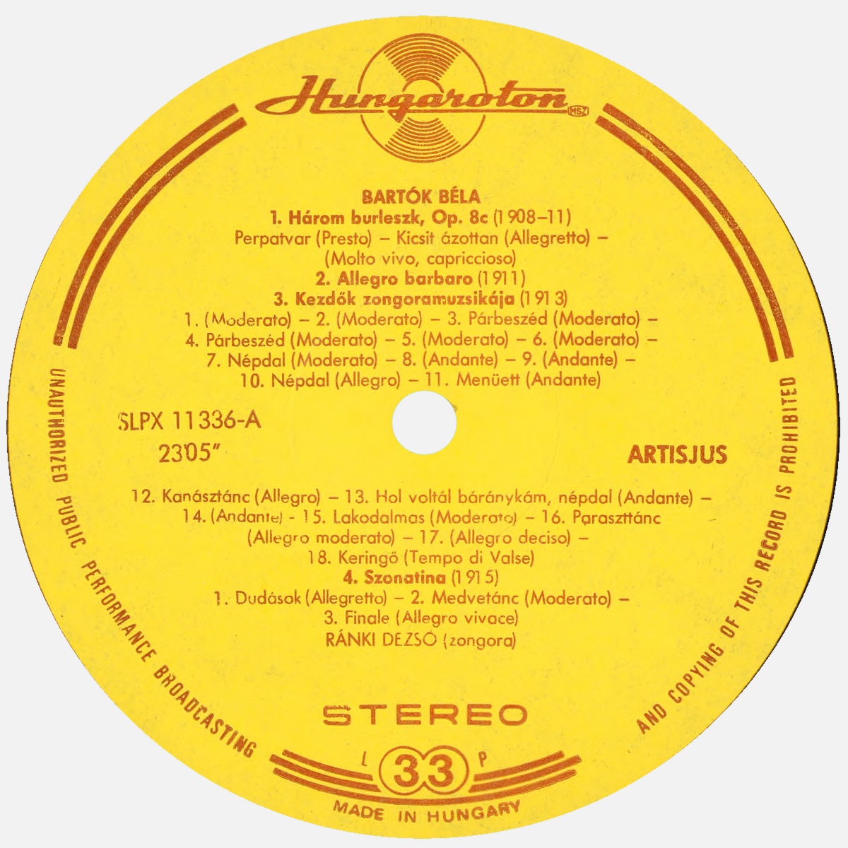 Béla Bartók, Allegro barbaro (1911) Sz 49, BB 63, Deszö Ránki, 30 octobre au 7 novembre 1967, Hungaroton Studio, Rottenbiller utca 47., Budapest