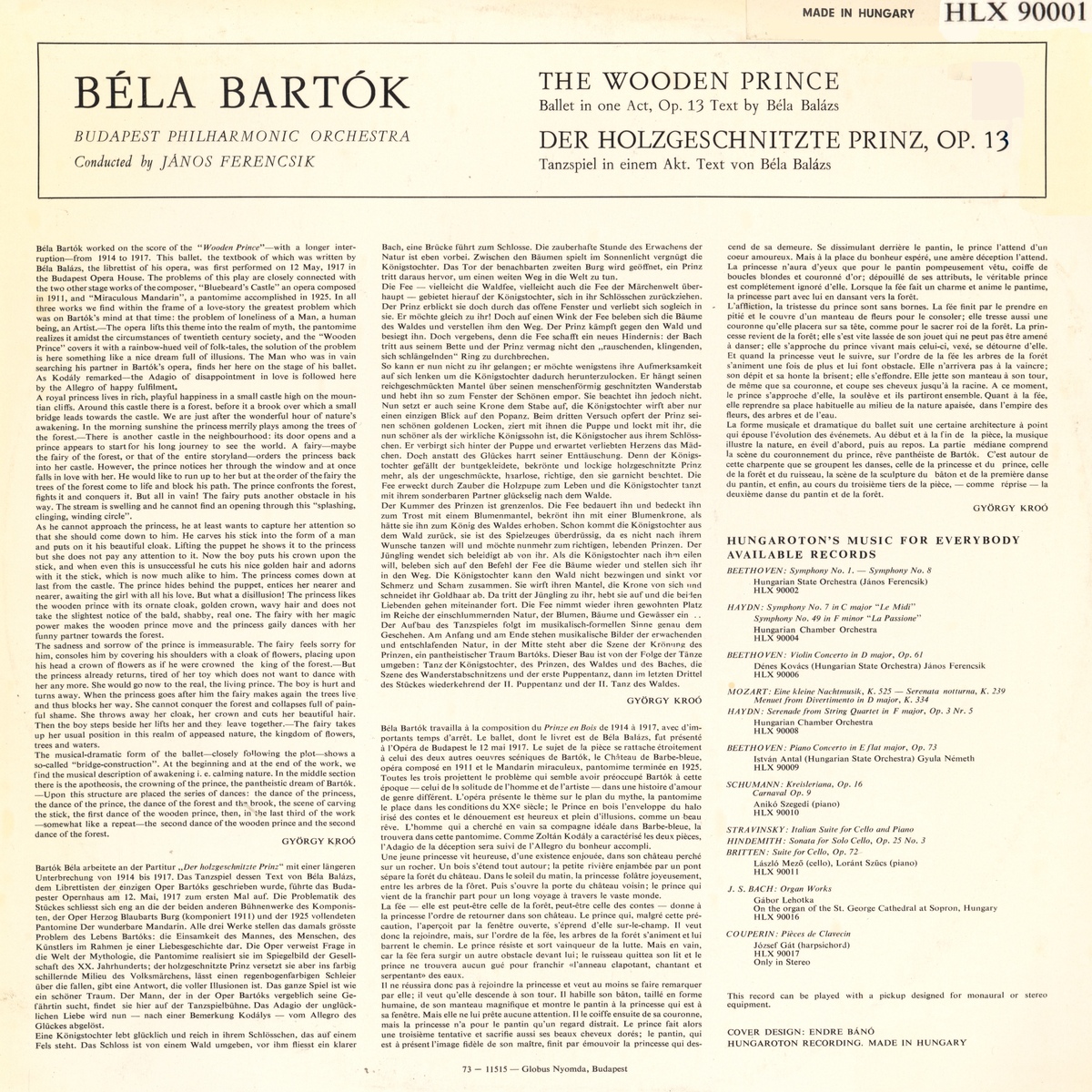 Béla Bartòk, Le Prince de bois, ballet pantomime en un acte, op. 13, Sz 60, Orchestre Philharmonique de Budapest, Janos Ferencsik, 27-30 juin 1963, Hungaroton Studio, Rottenbiller utca 47., Budapest