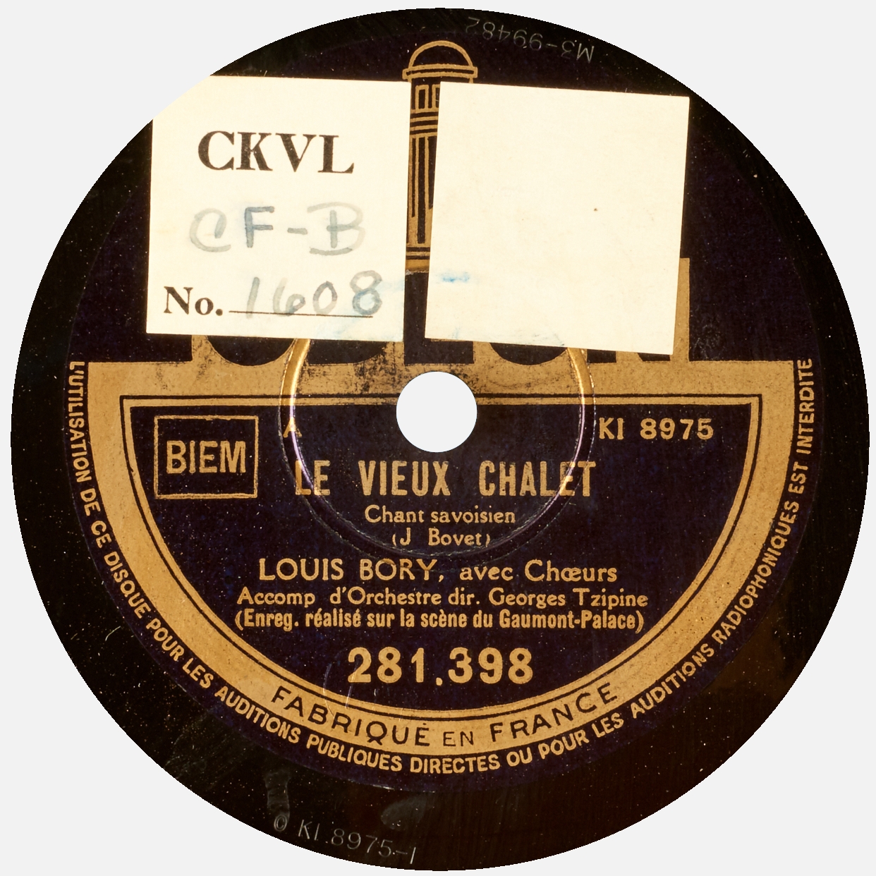 Joseph Bovet, Le vieux chalet, Chant savoisien, Louis Bory, ténor, choeur et orchestre, Georges Tzipine, enregistré sur la scène du Palais Gaumont
