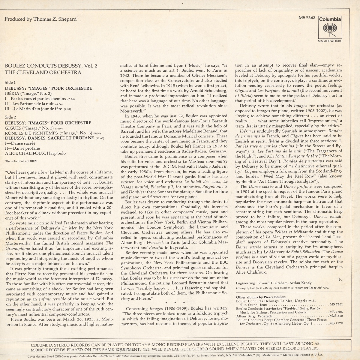 Cet enregistrement de Pierre BOULEZ avec l'Orchestre de Cleveland marque le début de sa période comme «principal guest conductor» de cet orchestre (1967 - 1972).