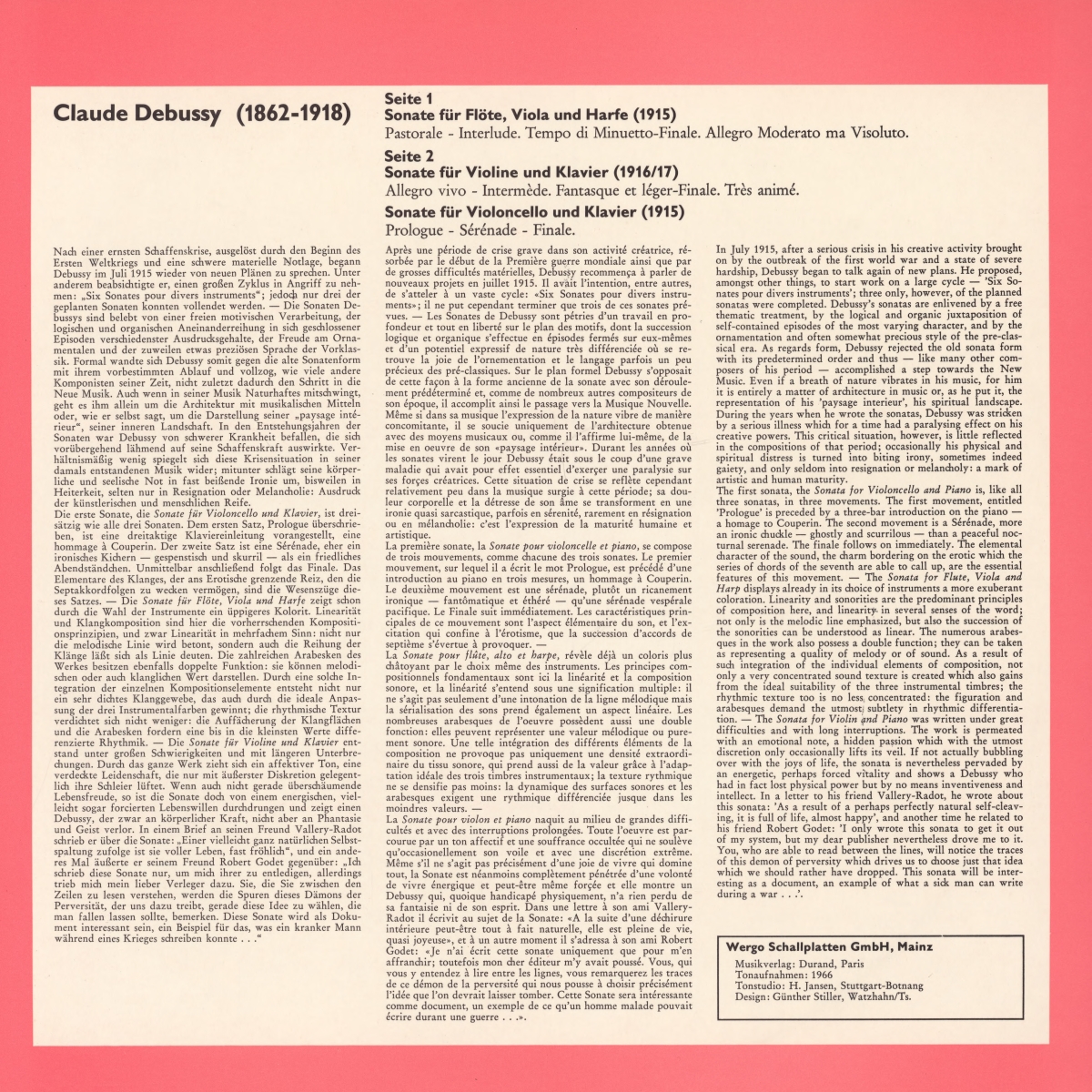 Pour une courte introduction sur les trois sonates de Claude DEBUSSY publiées sur le disque WERGO WER 60 025, voir cette page de mon site.