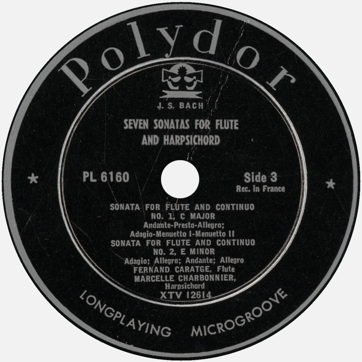 Johann Sebastian BACH, Sonate en do majeur pour flûte traversière et clavecin obligato, BWV 1033, Fernand CARATGÉ, flûte, Marcelle CHARBONNIER, clavecin, 1949