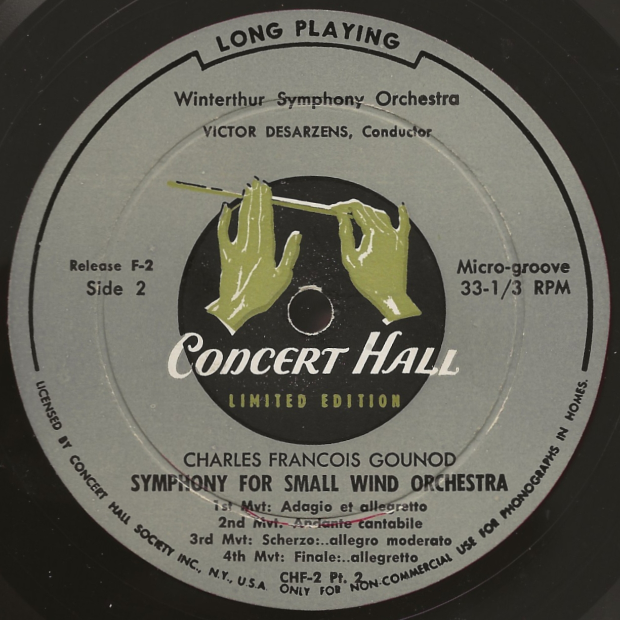 Charles Gounod, Petite Symphonie pour une flûte, deux hautbois, deux clarinettes, deux cors et deux bassons, Symphonieorchester Winterthur (l'actuel Musikkollegium Winterthur), Victor Desarzens, 1951