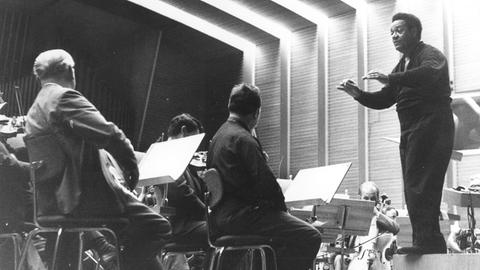 Dean DIXON en répétition avec l'Orchestre de la Radio de Hesse, un instantané fait par Klaus DRINKWITZ, cité de cette page de la «Hessische Rundfunk (hr)»