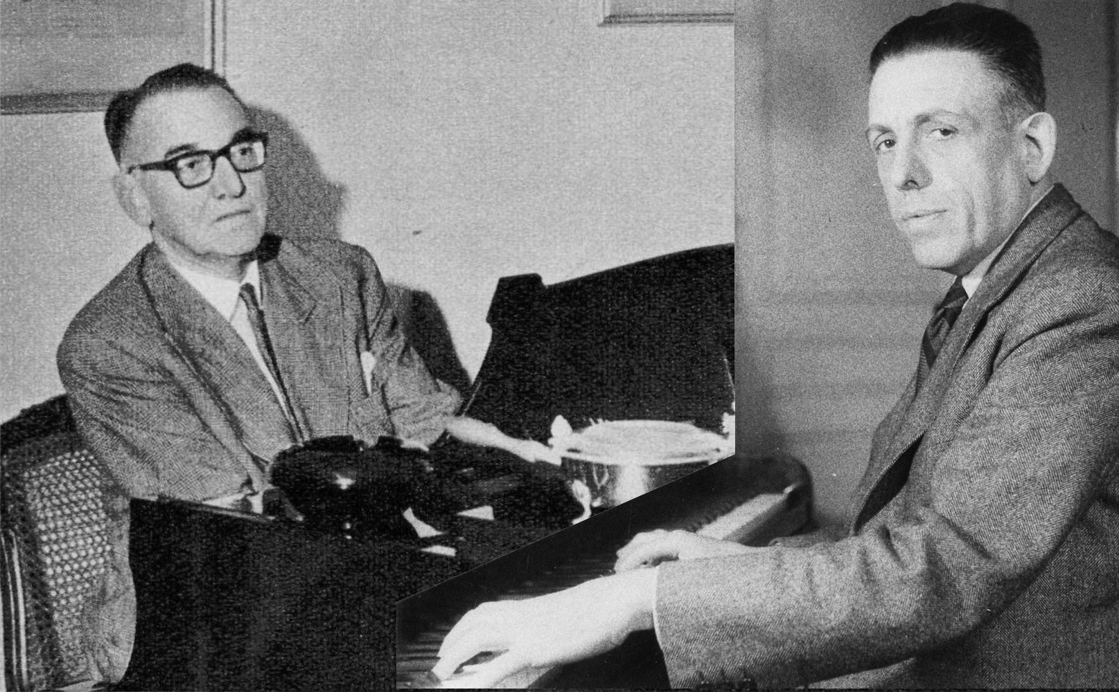 À droite et à gauche: portraits de Victor DESARZENS et Francis POULENC, cliquer sur les photos pour voir leurs agrandissements - resp. les originaux - et leurs références. Ces portraits sont rendus disponibles grâce à la splendide banque de données SCRIPTORIUM