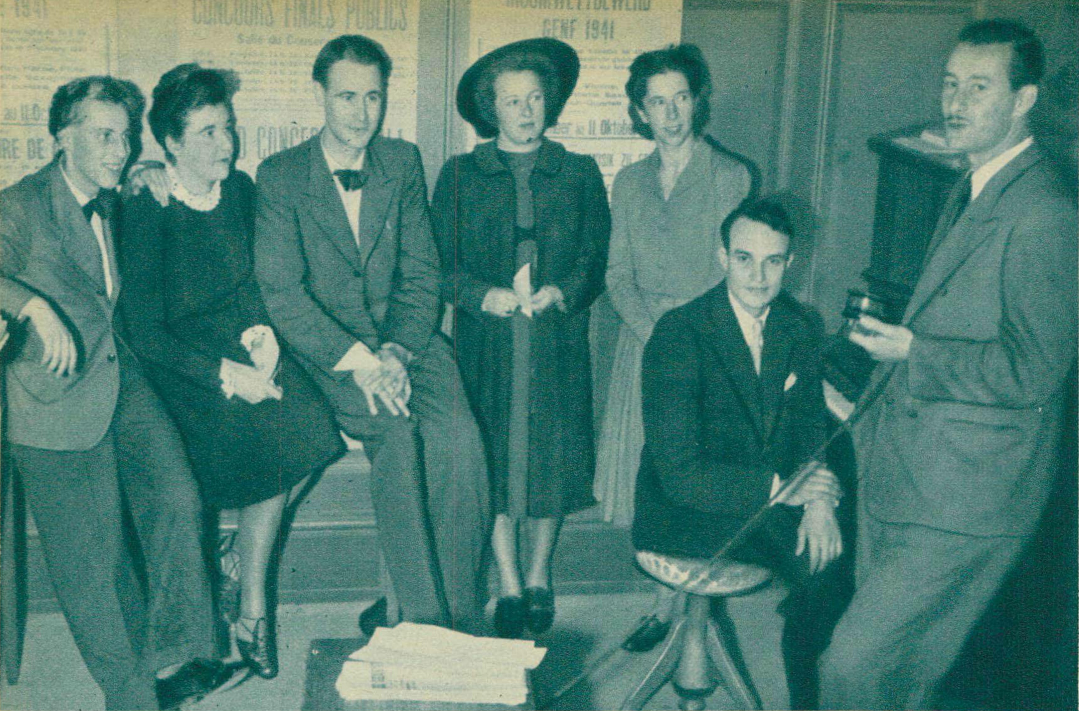 Publié dans la revue Le Radio du 17 octobre 1941, No 42, en page 1314: Paul Ladame, de Radio-Genève, recueille les déclarations de lauréats du Concours national d'exécution musicale, à Genève. De gauche à droite: Willy Urfer (flûte), Madeleine Depraz (piano), Fritz Mack (chant), Heidi Zumbrunn (chant), Blanche Honegger (du Quatuor Honegger) et André Perret (piano), Photo Hélios