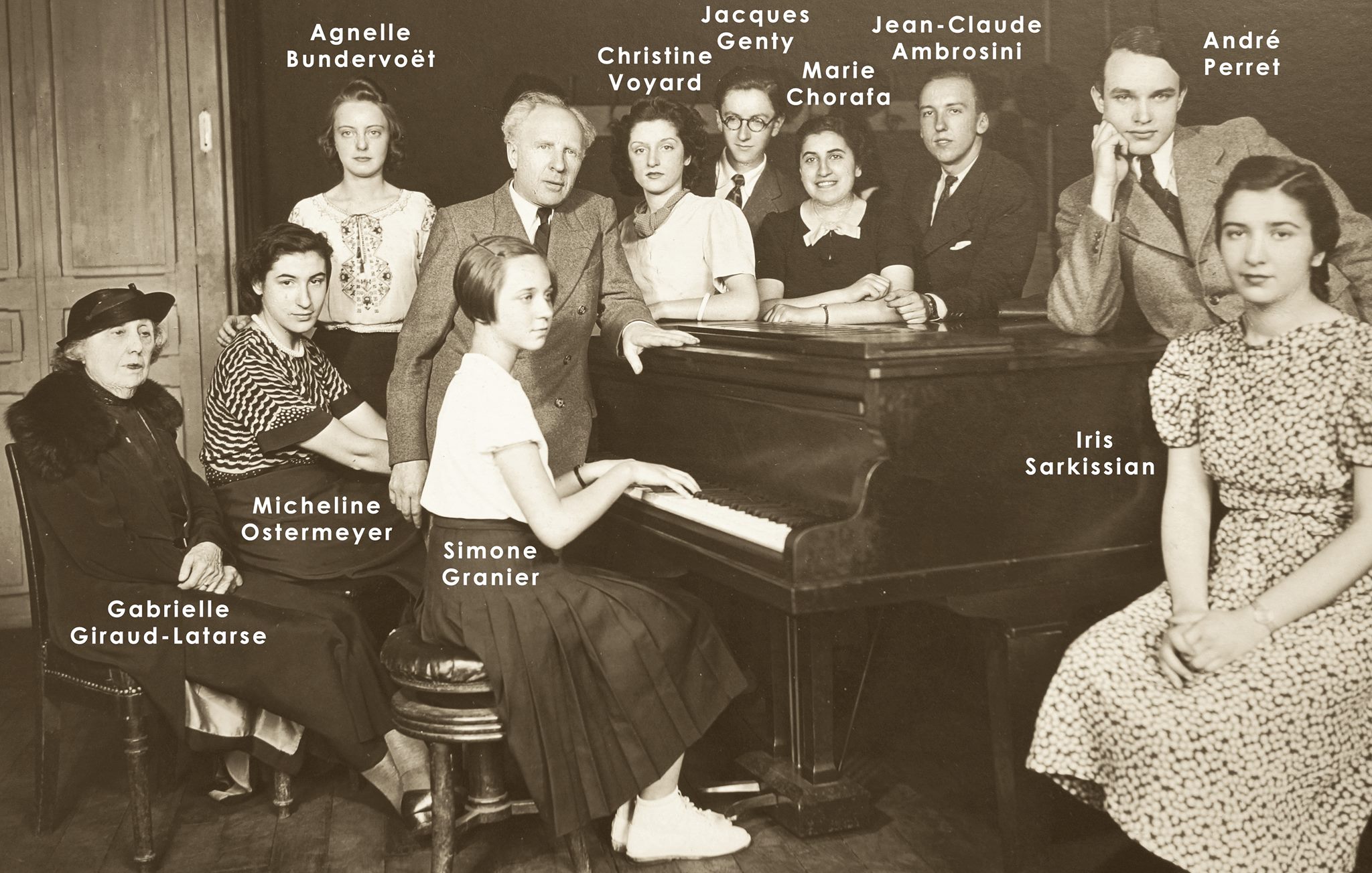 André Perret en 1938 dans la classe de Lazare-Lévy au Conservatoire national de musique de Paris, une photo mise sur Facebook par Frédéric Gaussin, qui fut élève de Agnelle Buntervoët