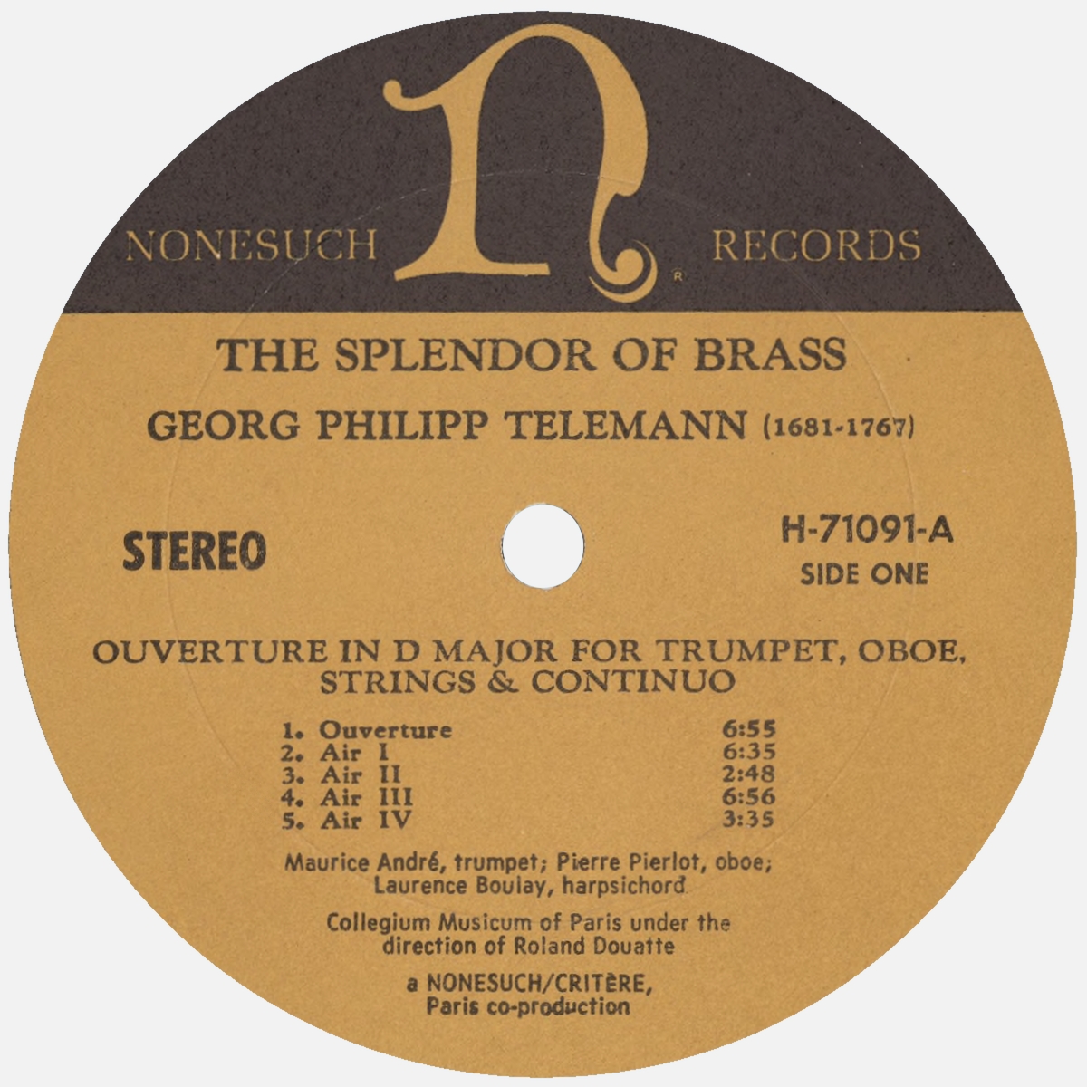 Les trois oeuvres de ce disque ont en commun la splendide sonorité des cuivres baroques du XVIIIe siècle - une trompette dans le Telemann de la première face, deux cors “français” - sans soupapes - dans la paire de concerti de Vivaldi sur l'autre face.