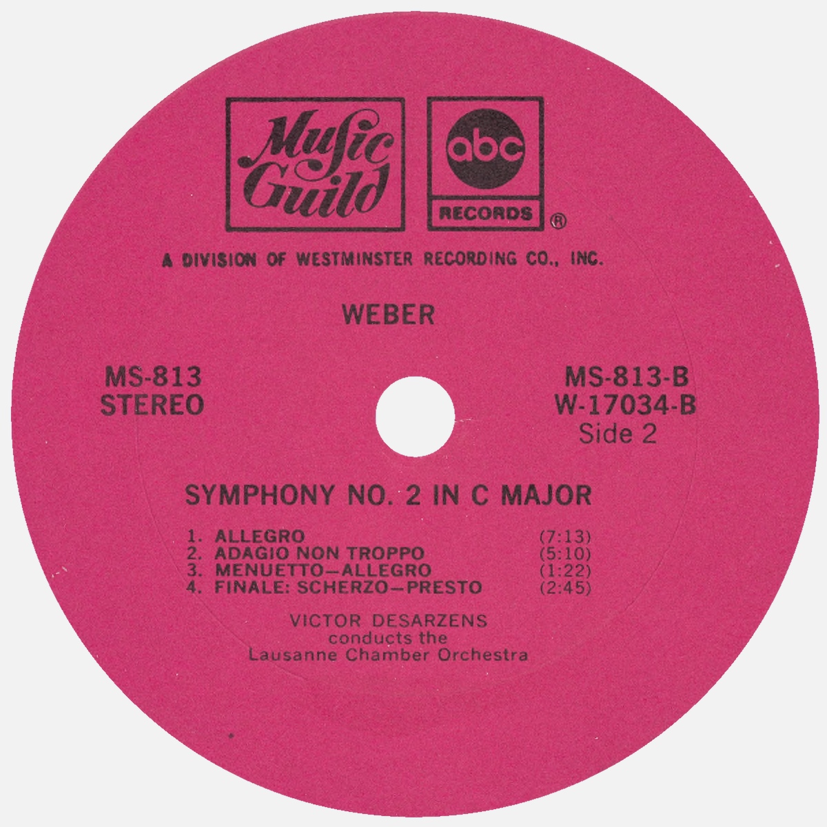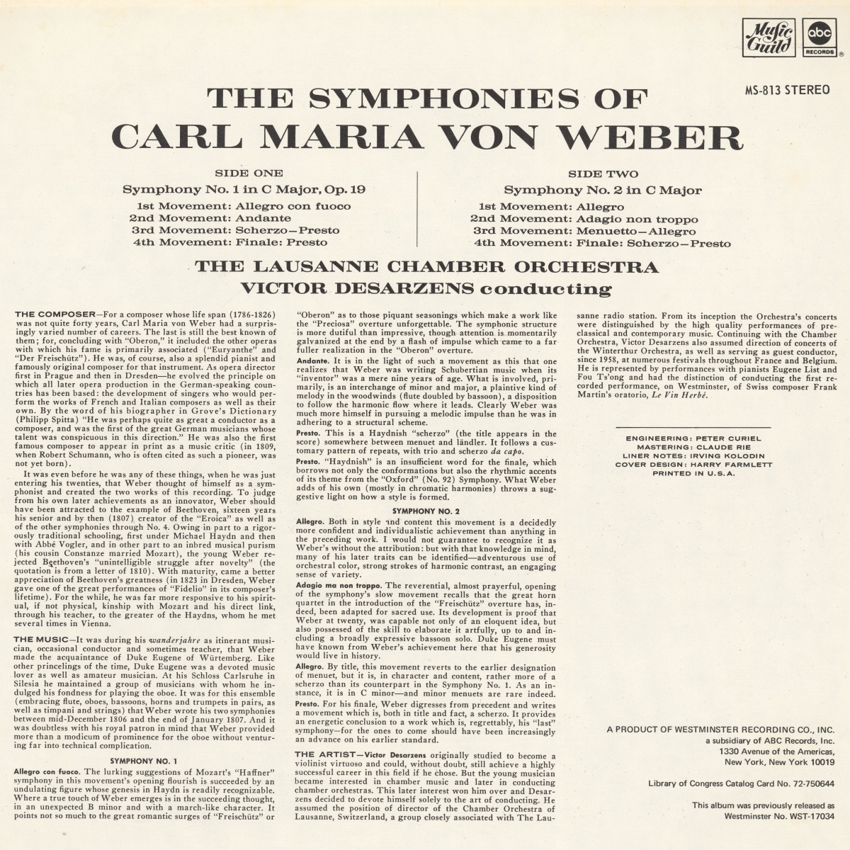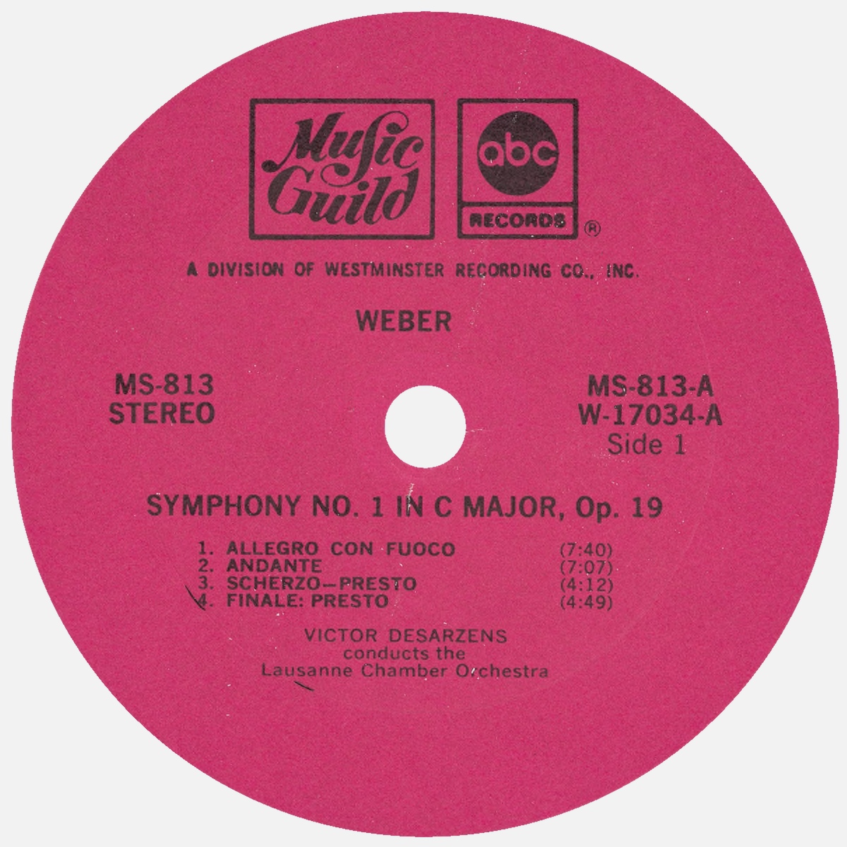 Carl Maria von Weber, Symphonie No 2 en do majeur, sans No d'opus, J.51, Orchestre de Chambre de Lausanne, Victor Desarzens, septembre 1960