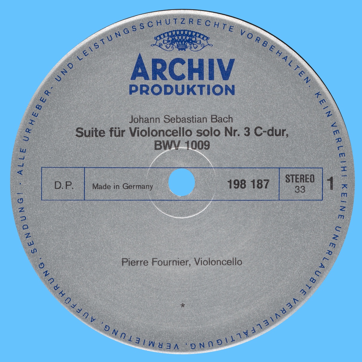 Johann Sebastian Bach, Suite pour violoncelle seul No 3 en ut majeur, BWV 1009, Pierre Fournier, Beethoven-Saal Hannover, 21 décembre 1960