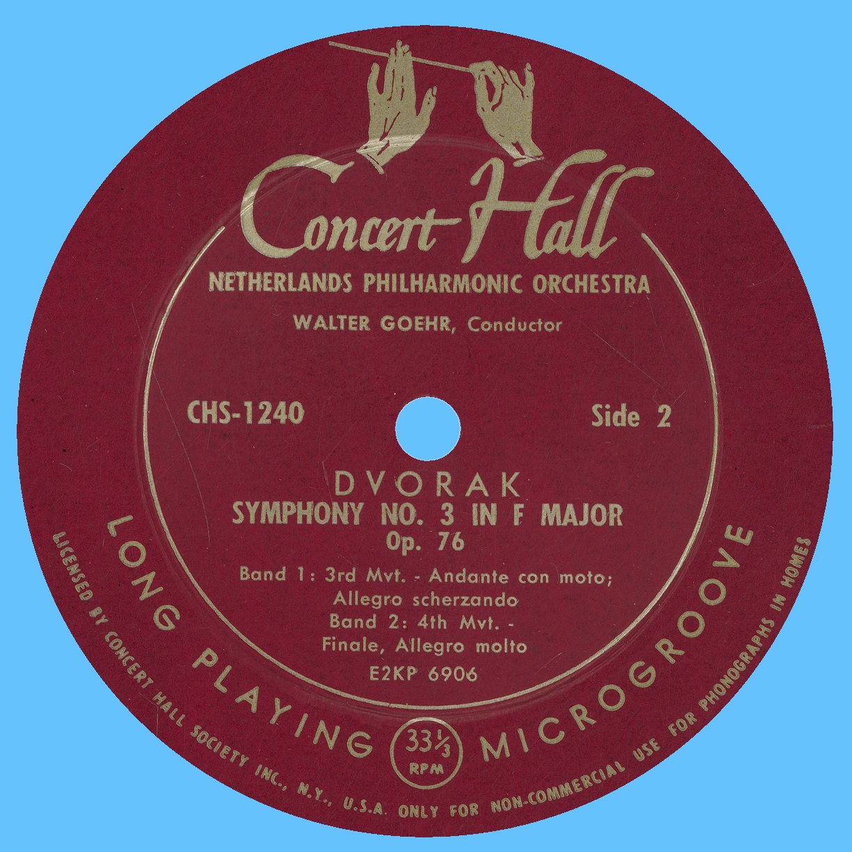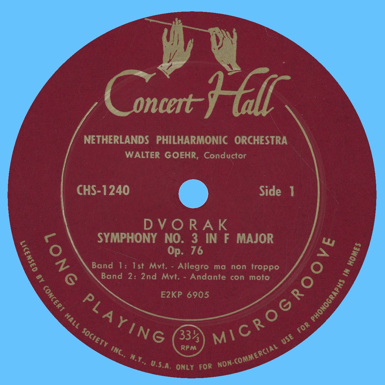 Walter GOEHR dirige un orchestre nommé «Netherlands Philharmonic Orchestra». Il s'agit d'un orchestre formé pour l'occasion, apparaissant très souvent dans les enregistrements Concert Hall & Sociétés affiliées, et non d'un précurseur de l'orchestre portant actuellement ce nom (Nederlands Philharmonisch Orkest), fondé bien plus tard, en 1985.