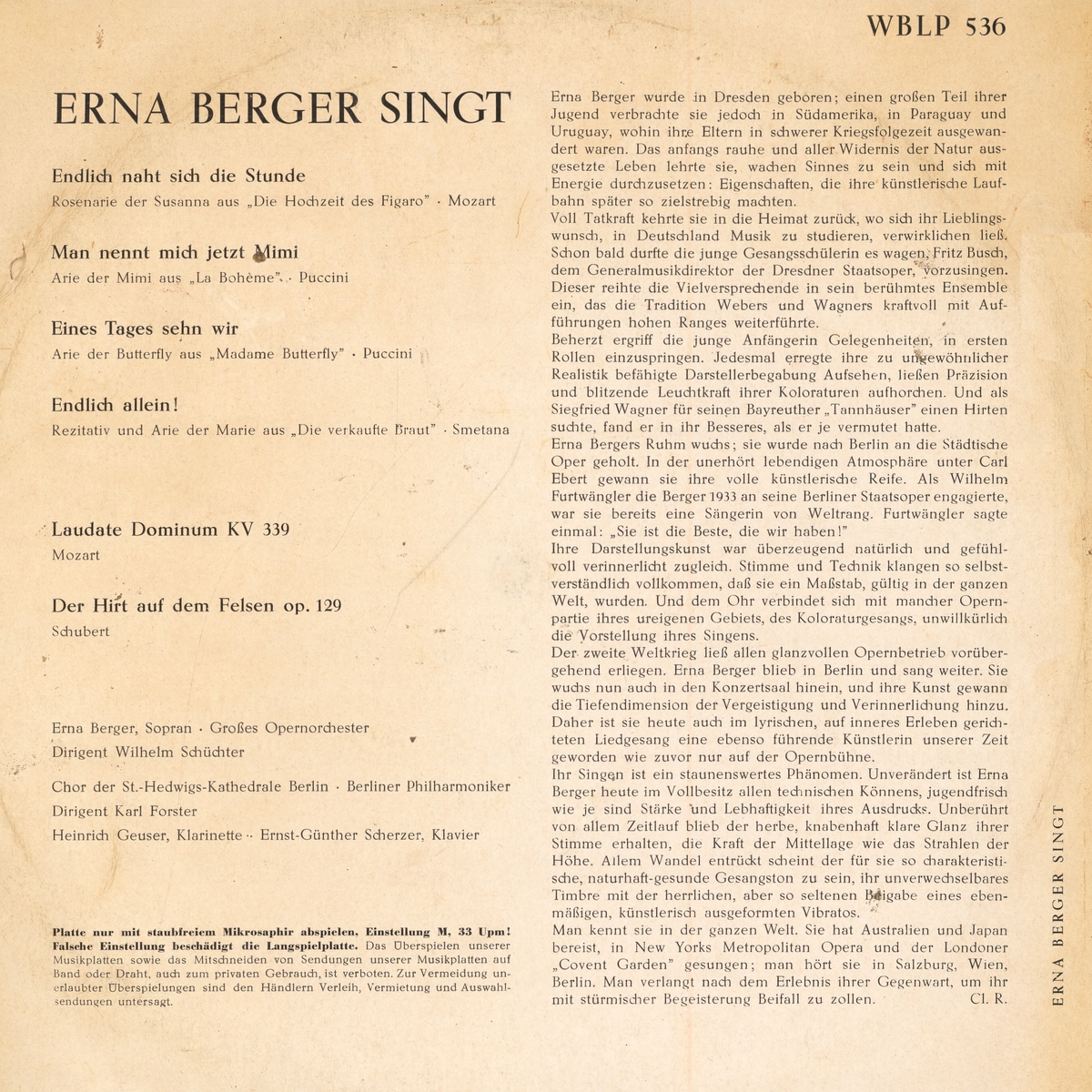 Erna BERGER, soprano, Heinrich GEUSER, clarinette
