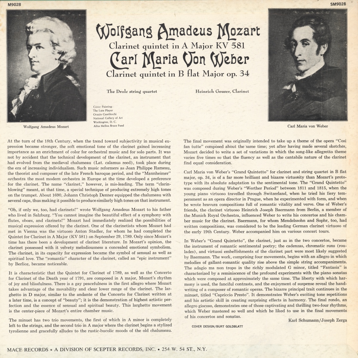 Carl Maria von Weber, Quintette pour clarinette en si bémol majeur, op. 34, Heinrich GEUSER, clarinette, Quatuor DROLC, 19 au 22 décembre 1962