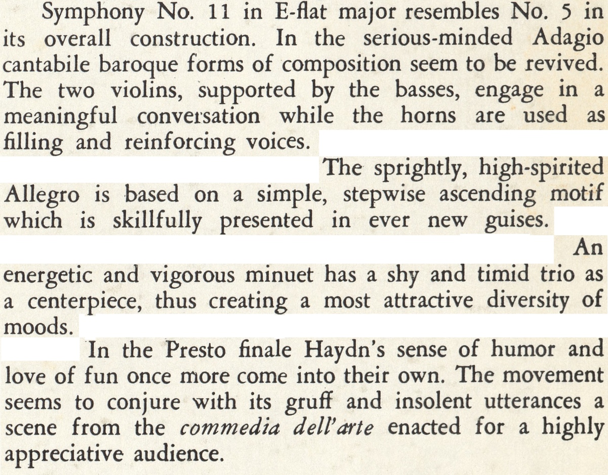 La courte description de la symphonie No 11 que donne Karl GEIRINGER au verso de la pochette du disque MHS Orpheus OR H-202: