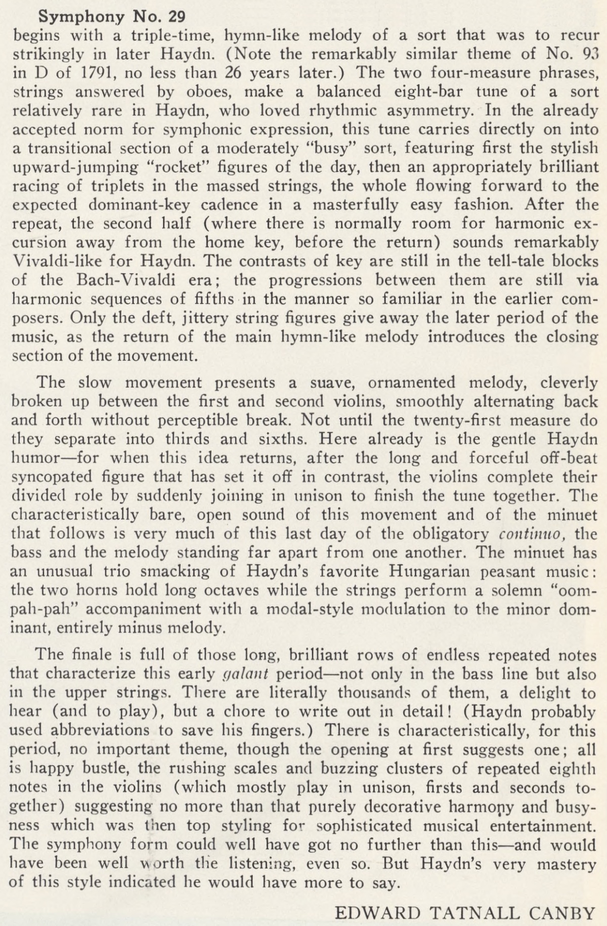 Joseph Haydn, Symphonie No 29 en mi majeur, Little Orchestra of London, Leslie Jones