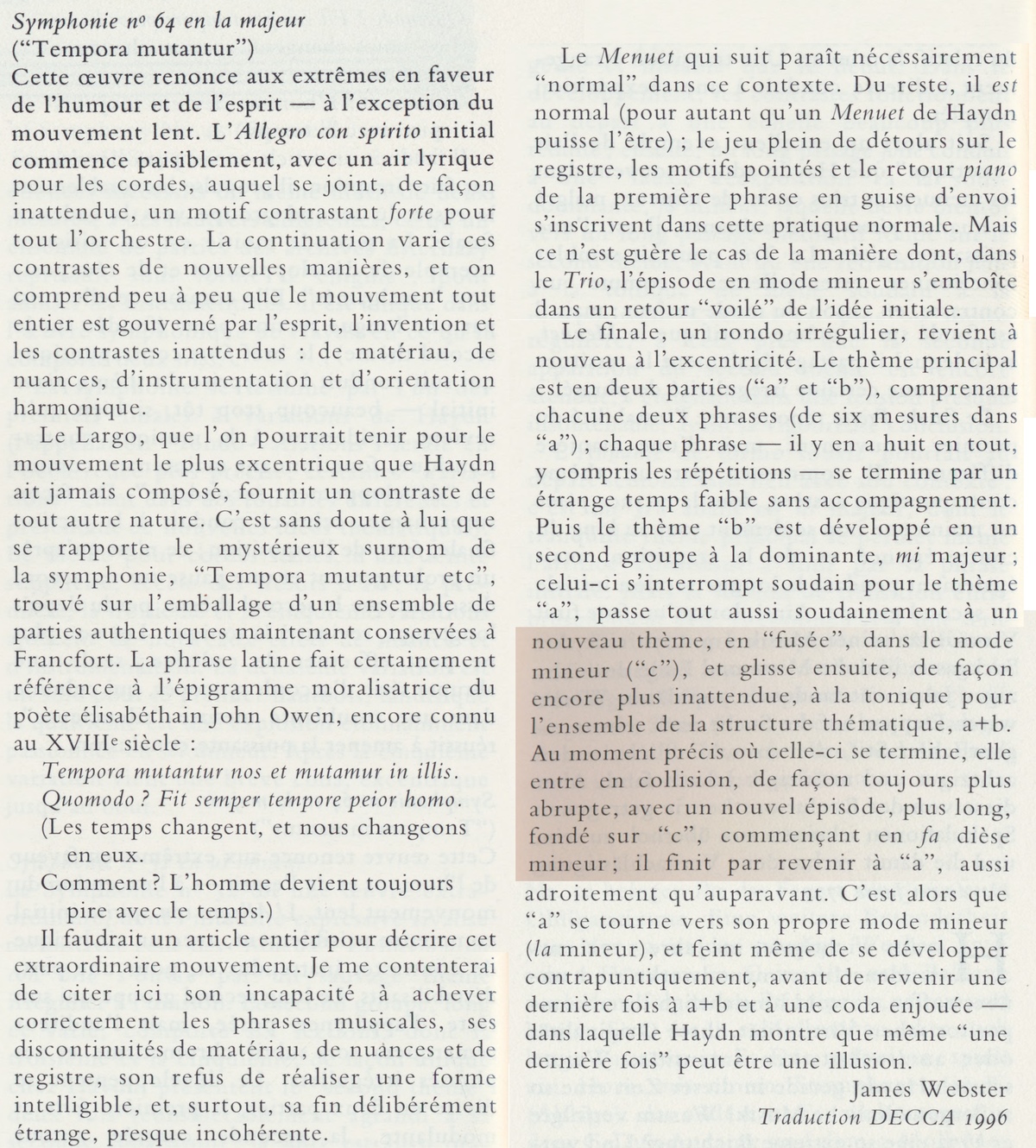 Dans ses superbes notes, James WEBSTER a rédigé un texte très détaillé sur la genèse et la structure de cette 64e symphonie: