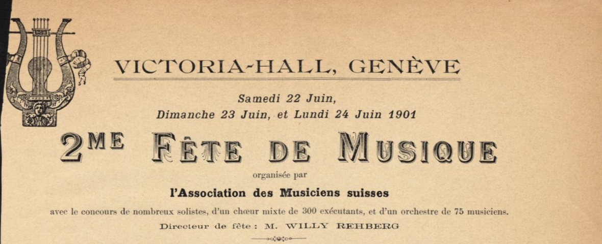 Deux extraits du programme de la 2e Fête de Musique, cités de cette page du site ONSTAGE, collection du Conservatoire de Genève