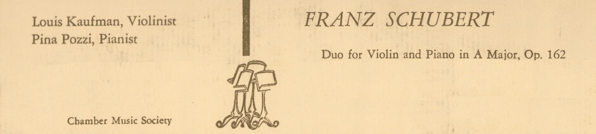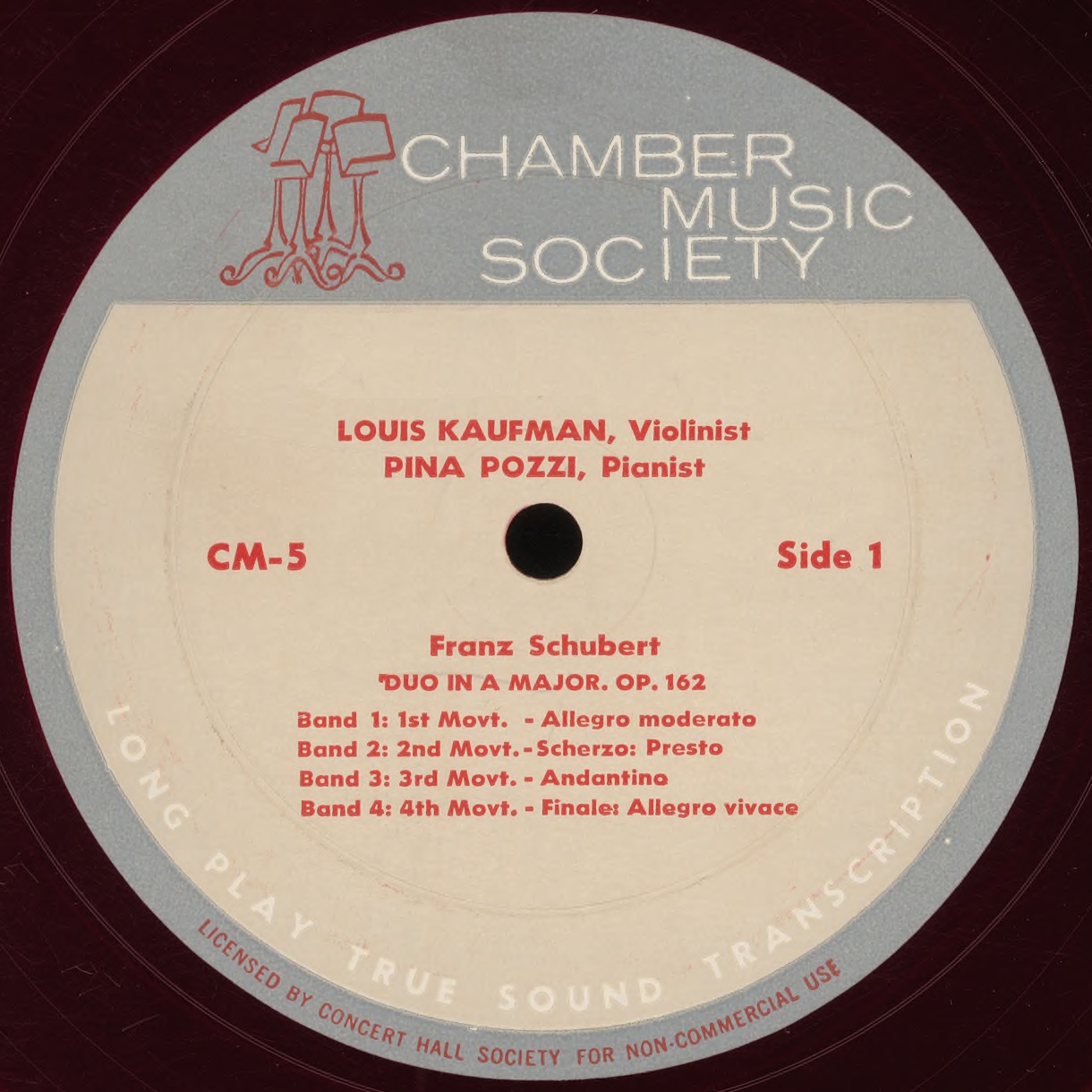 L'enregistrement qui en est proposé ici fut fait en 1954 pour le label Concert Hall avec Louis KAUFMAN au violon et Pina POZZI (*) au piano. Il fut publié sur les disques Concert Hall CH-H14, Musical Masterspiece Society MMS 2084 et Chamber Music Society CM 5.