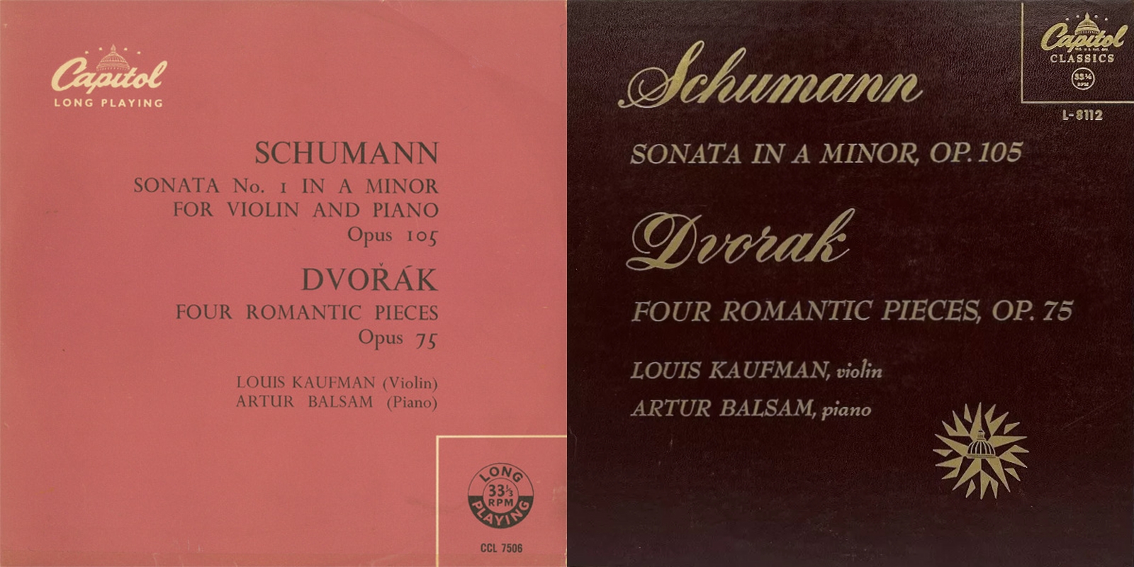 L'enregistrement qui en est proposé ici fut fait pour le label Capitol - publié sur les disques CCL 7506 (Grande-Bretagne, un pressage de Decca) et L 8112 (USA) - avec Louis KAUFMAN au violon et Artur BALSAM au piano.