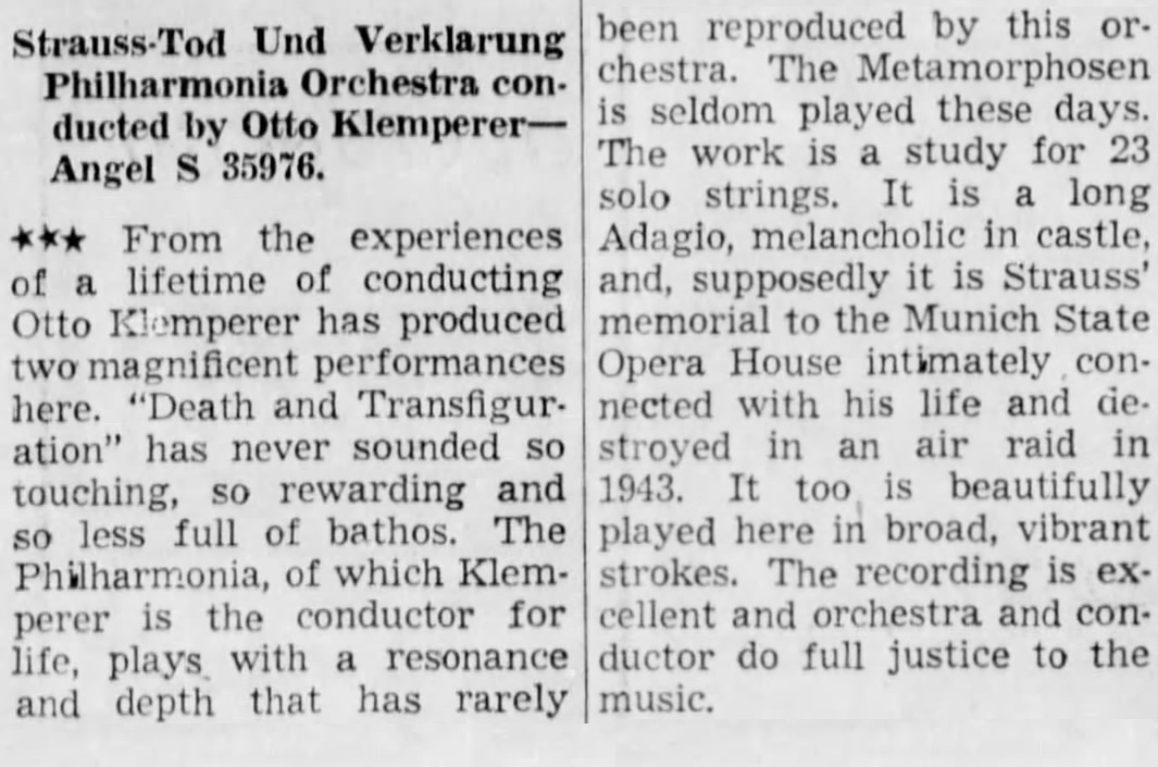 Richard Strauss, Mort et Transfiguration, Op. 24, TrV 158, Philharmonia Orchestra, Otto Klemperer, 3-4 novembre 1961, Kingsway Hall, London (22:26)