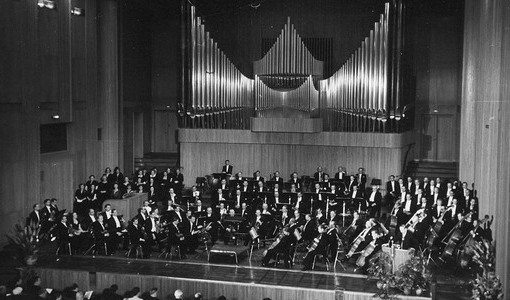 L'enregistrement proposé sur cette page vient de la collection d'un mélomane allemand, que je remercie pour sa générosité: Franz MARSZALEK dirige le choeur de la Radio de Cologne et l'Orchestre Radio-Symphonique de Cologne, les actuels WDR Rundfunkchor Köln et WDR Sinfonieorchester Köln, la soliste est Gisela LITZ, une prise de son datant de 1956, très probablement faite dans la Grande Salle de la Maison de la Radio de Cologne (photo ci-dessus).