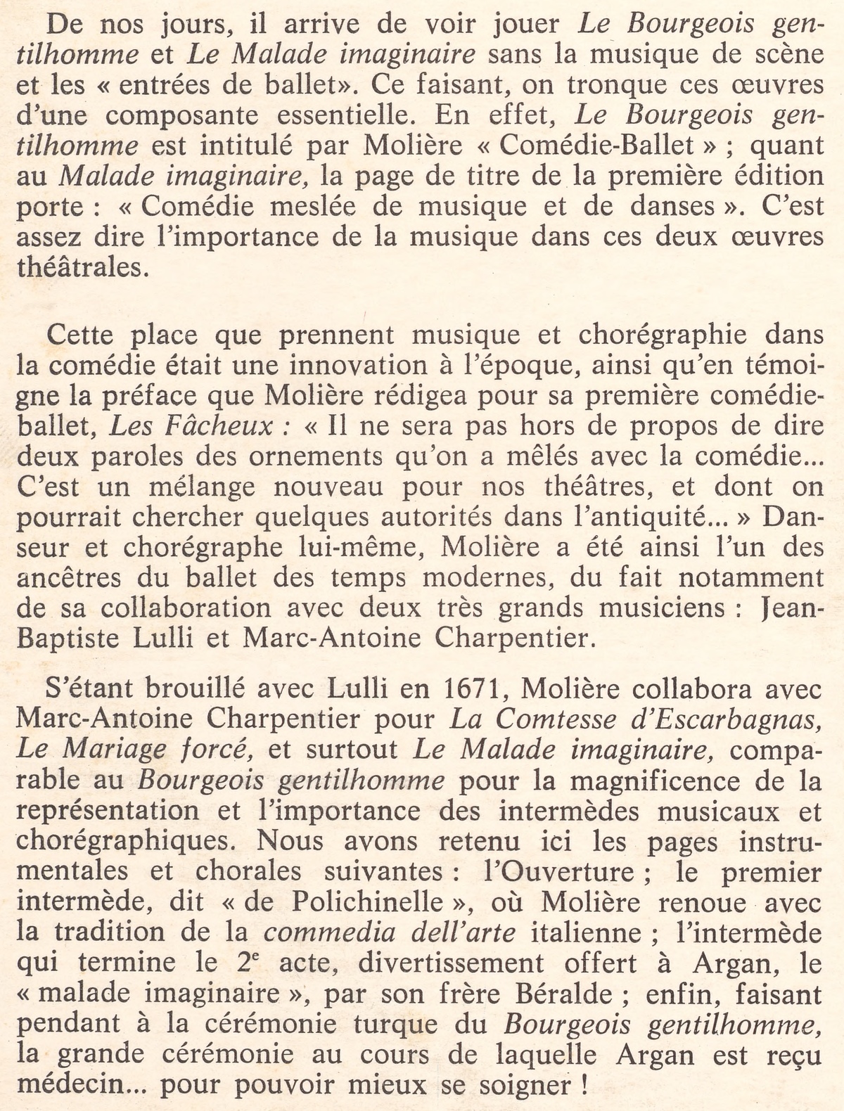 Marc-Antoine Charpentier, Le Malade Imaginaire, extraits de la musique de scène, Chorale des Jeunesses Musicales de France, Orchestre de chambre des Concerts de Paris, Louis Martini, SMS 2755