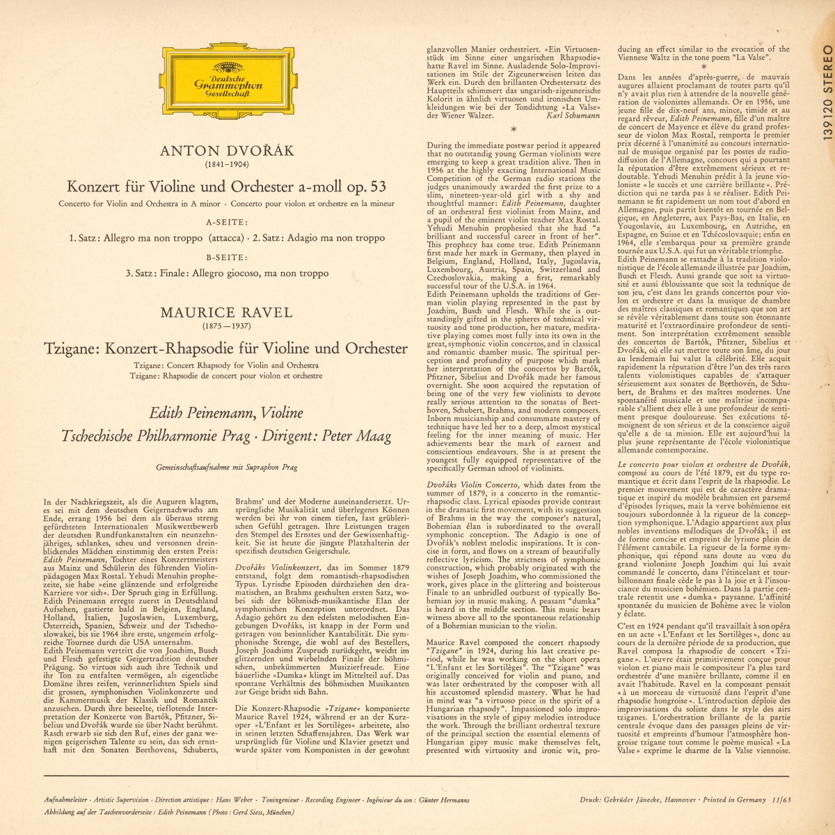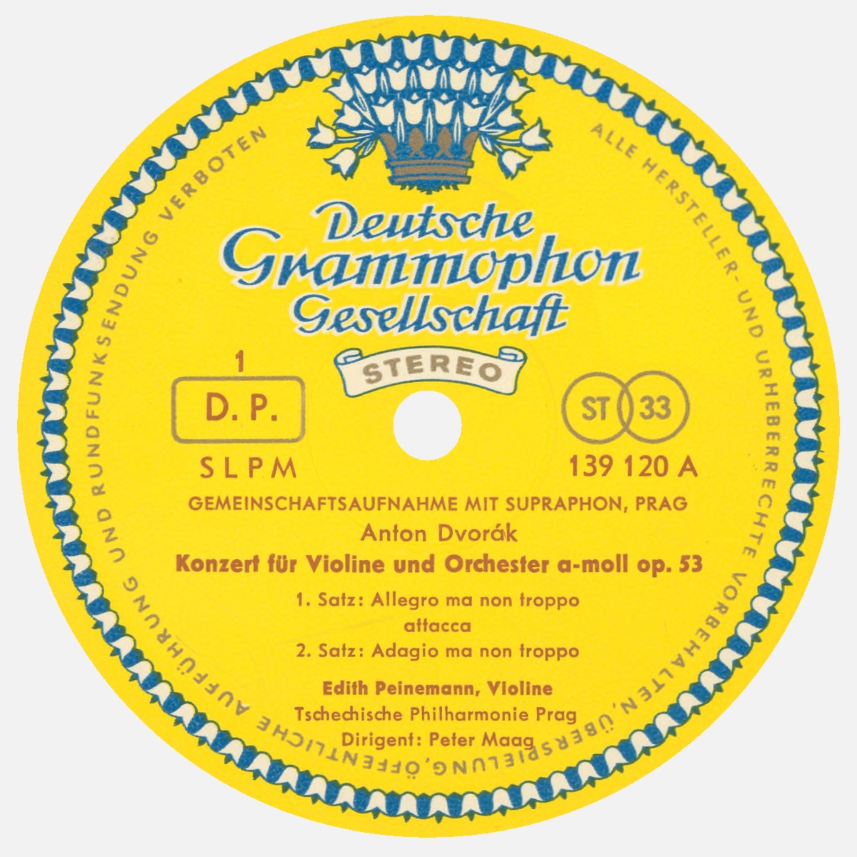 Antonin Dvorak, Concerto pour violon et orchestre en la mineur, B. 108, op. 53, Edith Peinemann, Orchestre Philharmonique Tchèque, Peter Maag, 1-3 juillet 1965, Rudolfinum, Prague