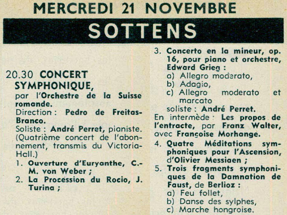 Hector Berlioz, Trois extraits orchestraux de la Damnation de Faust, Op. 24, H 111, Orchestre de la Suisse Romande, Pedro (António da Costa) de FREITAS BRANCO, 21 novembre 1956