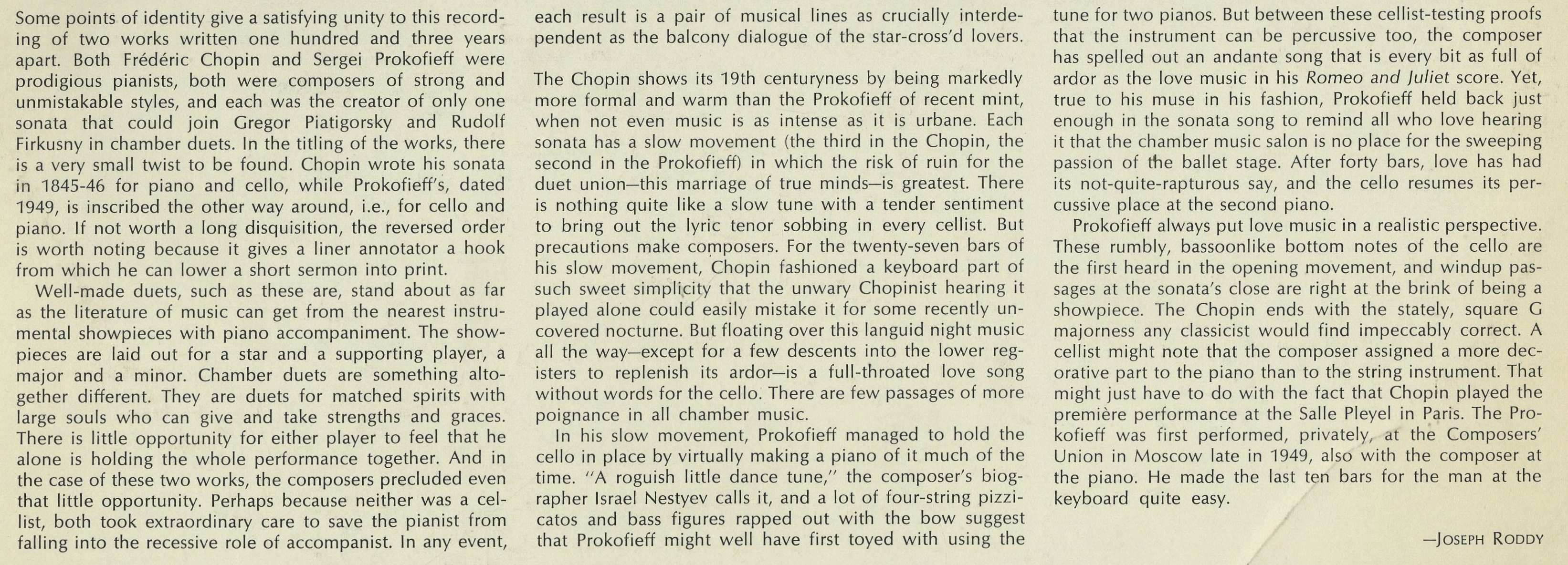 Sergei Prokofjew, Sonate pour violoncelle et piano en ut majeur, Op. 119, Gregor Piatigorsky, violoncelle, Rudolf Firkušný, piano, 22 juillet 1965