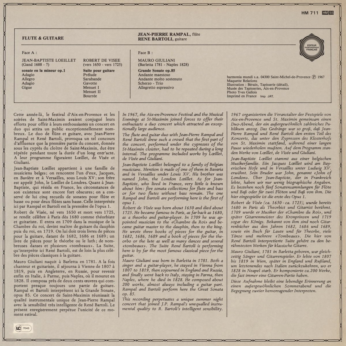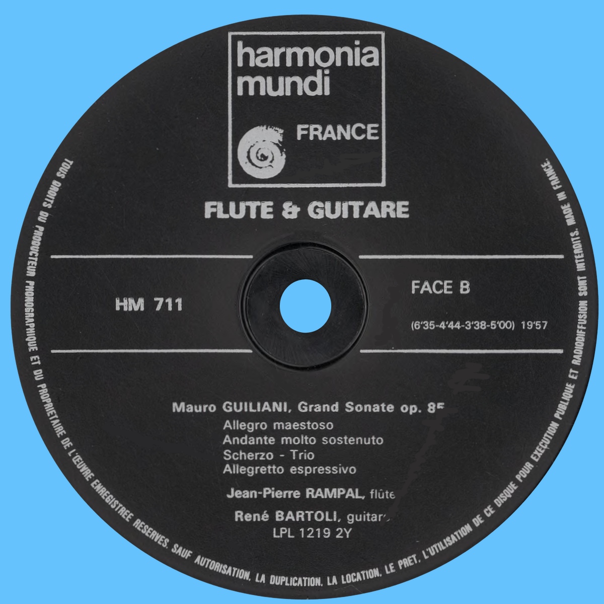 Mauro Giuliani, Grande Sonate op. 85, Jean-Pierre Rampal, flûte, René Bartoli, guitare, 1966