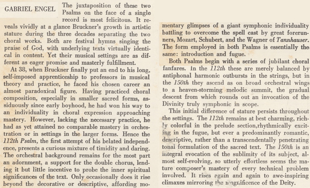 Anton Bruckner, Psaume 112, WAB 35, Psaume 150, WAB 38, Hilde Ceska, soprano, Choeur de chambre de l'Académie de Vienne («Wiener Akademie Kammerchor»), Orchestre Symphonique de Vienne, Henry Swoboda, 1950