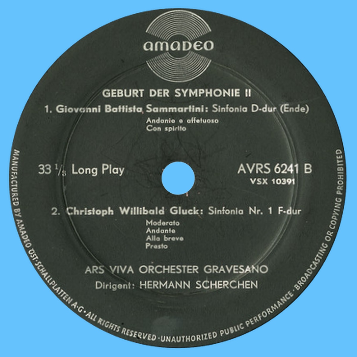 Christoph Willibald Gluck, Sinfonia No 1 en fa majeur, Chen F1 Wq. 165 No 5, Ars Viva Orchester Gravesano, Hermann Scherchen, 19-20 novembre 1961, studio électroacoustique expérimental de Gravesano