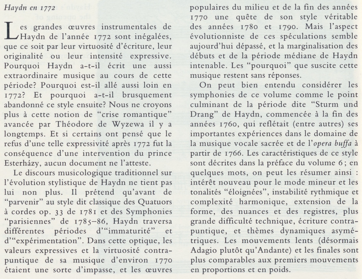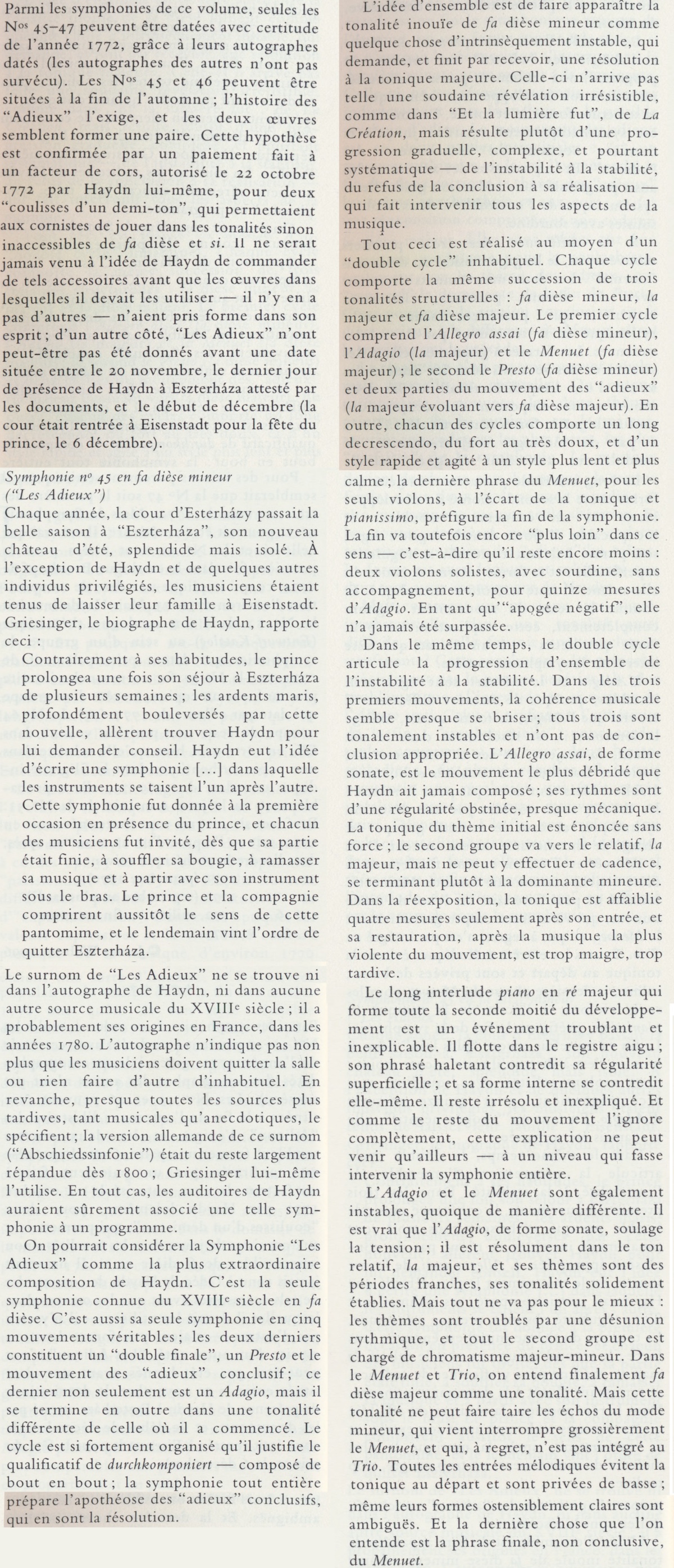 Dans ces mêmes superbes notes, James WEBSTER a rédigé un texte très détaillé sur la genèse et la structure de cette 45e symphonie. Tout d'abord sur la genèse de l'oeuvre et ses trois premiers mouvements - un texte un peu long, mais qu'il serait dommage de le raccoucir: