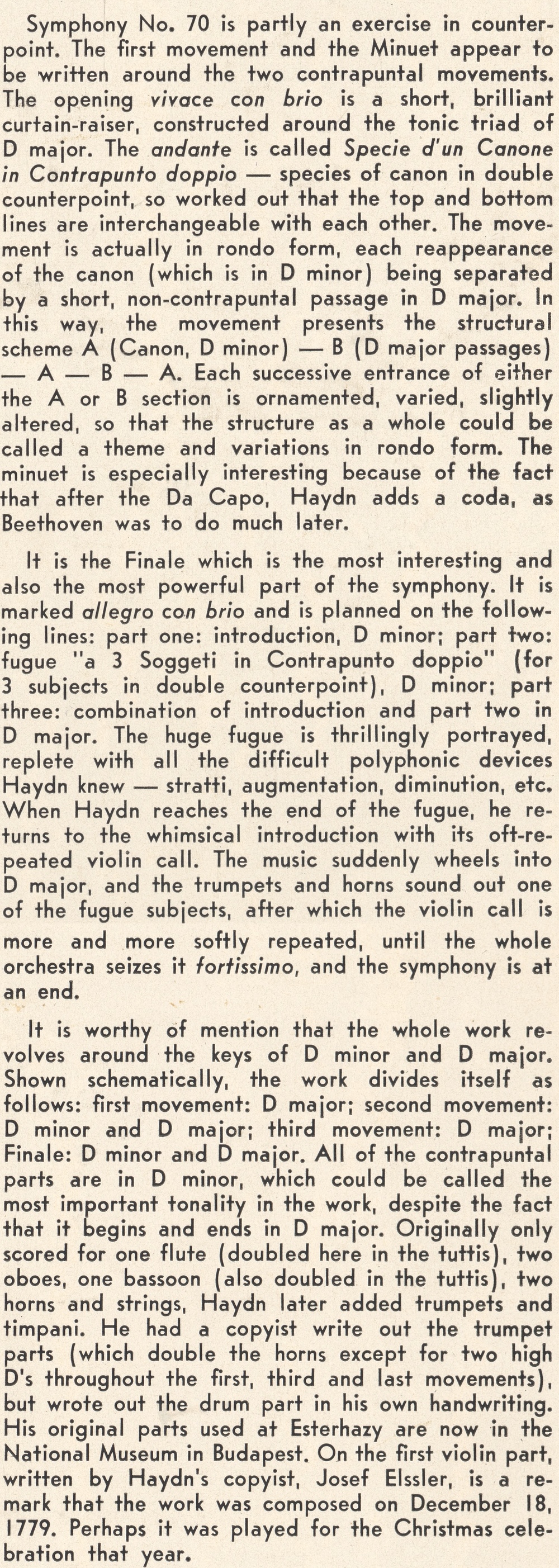 Joseph Haydn, Symphonie en ré majeur No 70, Orchestre de chambre de l'Académie d'État de Musique de Vienne, Hans Swarowsky, février 1952, Salle Mozart du «Konzerthaus» de Vienne