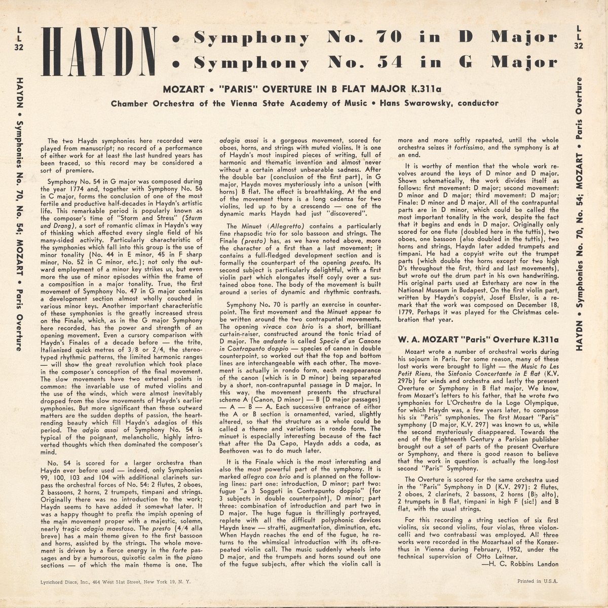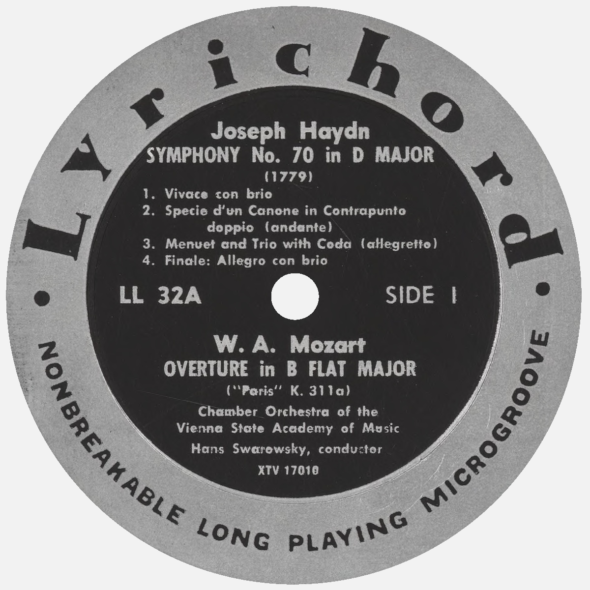 a) Orchestre de chambre de l'Académie d'État de Musique de Vienne, Hans Swarowsky, février 1952,