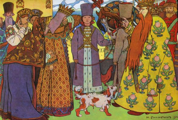 Ci-dessus: Trois illustrations faites en 1905 par Ivan Bilibin pour le conte en vers d'Alexandre Pouchkine
