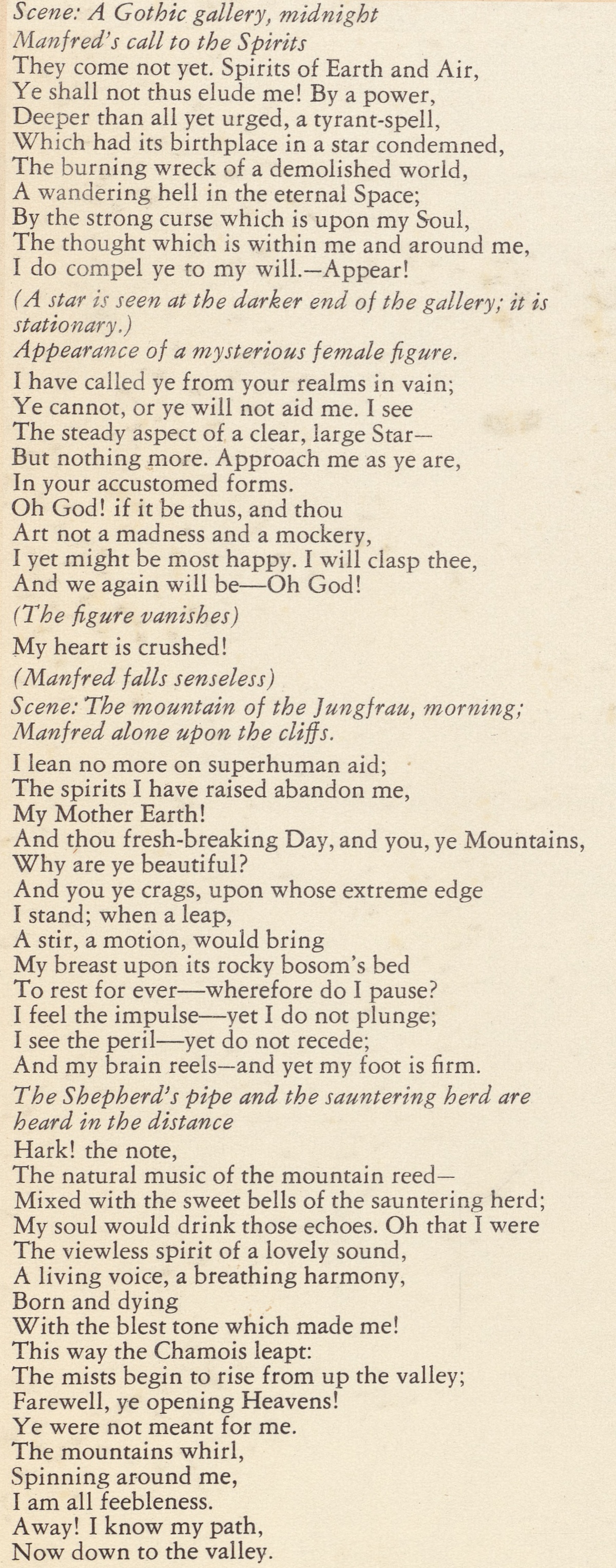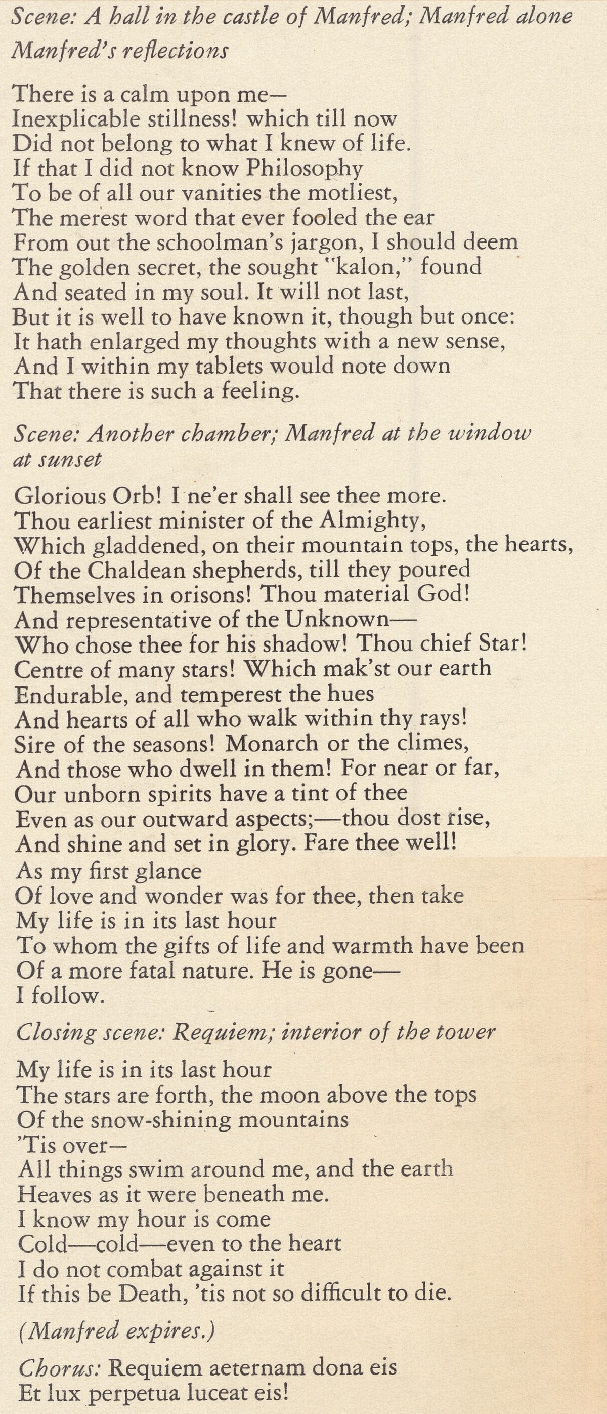 Manfred's reflections - Sunset - Closing scene: Requiem