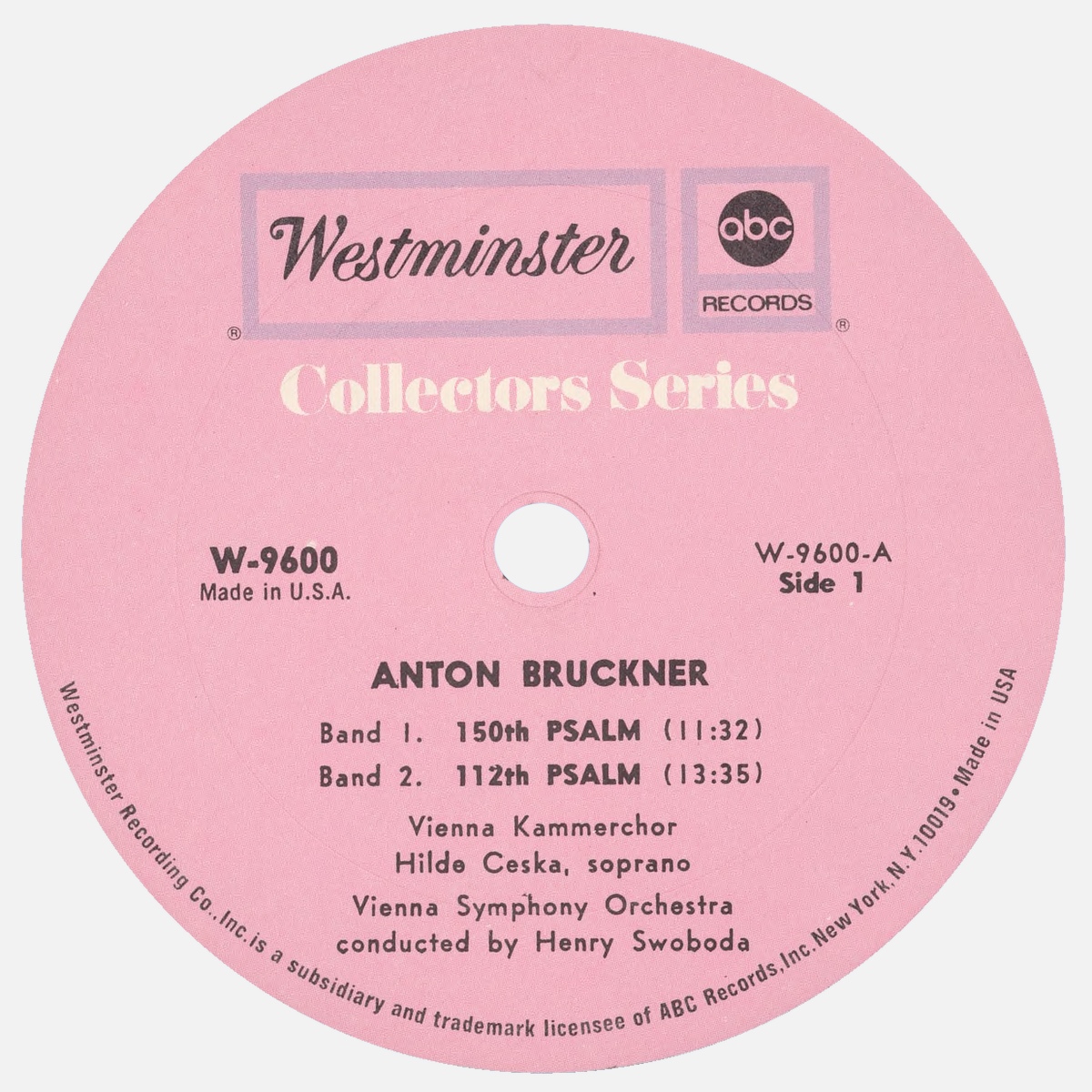 En 1951 , le label Westminster enregistra ce «Wandrers Sturmlied» avec le Choeur de chambre de l'Académie de Vienne et l'Orchestre Symphonique de Vienne sous la direction d'Henry SWOBODA, une première au disque! Dans les mêmes sessions - selon la discographie de Michael GRAY en avril 1951 - furent enregistrées deux oeuvres de Brahms, «Gesang der Parzen», Op. 89, et «Nänie», Op. 82. Le tout fut publié sur le 33 tours Westminster WL 5081. Dans la réédition utilisée pour cette restauration - Westminster WS 9600 - le «Wandrers Sturmlied» est couplé avec les psaumes 112 et 150 d'Anton Bruckner.