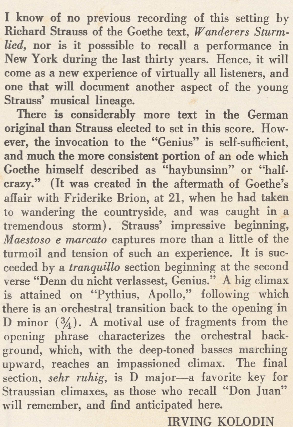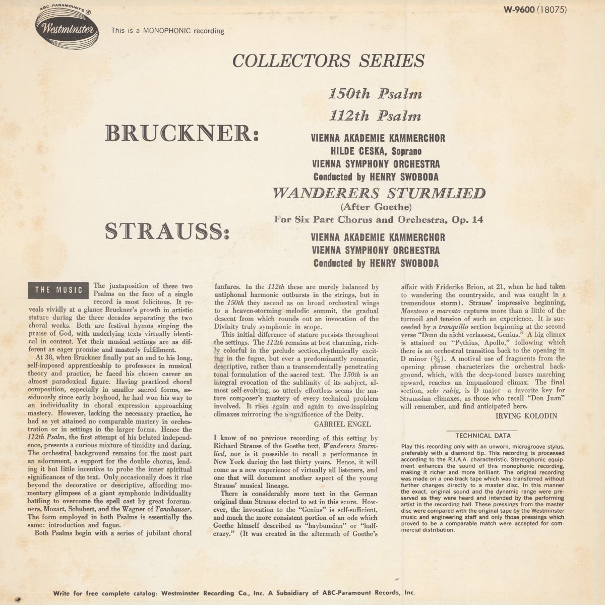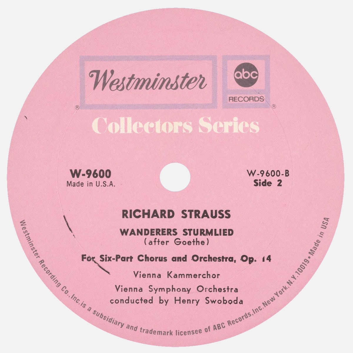 Richard Strauss, Wandrers Sturmlied Op. 14, TrV 131, Choeur de chambre de l'Académie de Vienne («Wiener Akademie Kammerchor»), Orchestre Symphonique de Vienne, Henry Swoboda, 1951